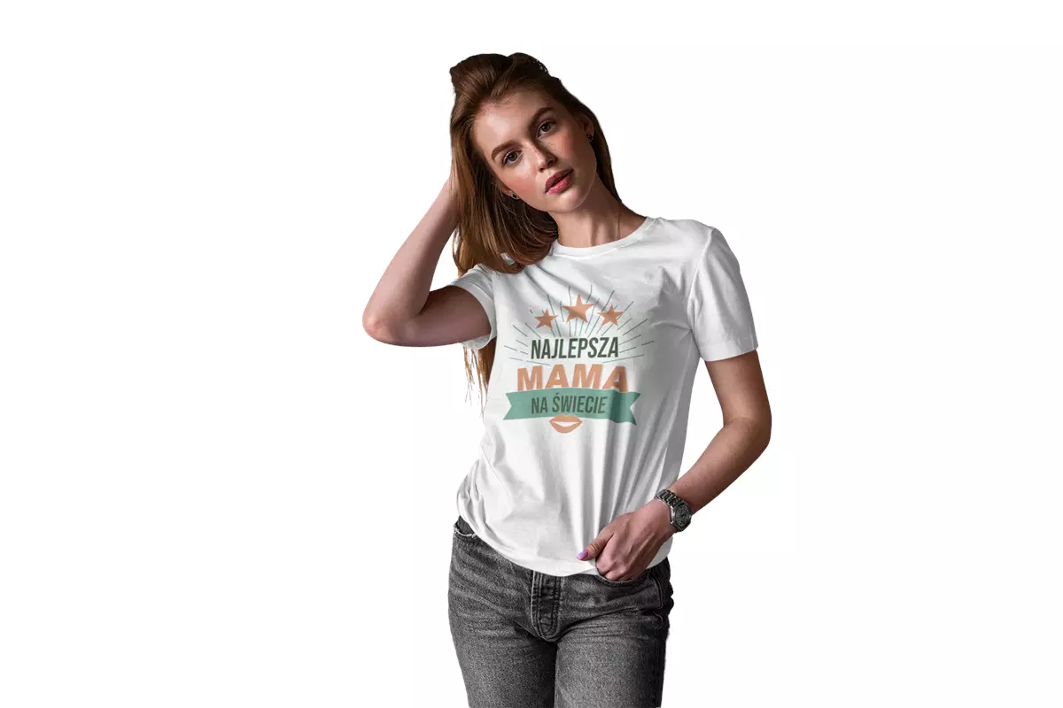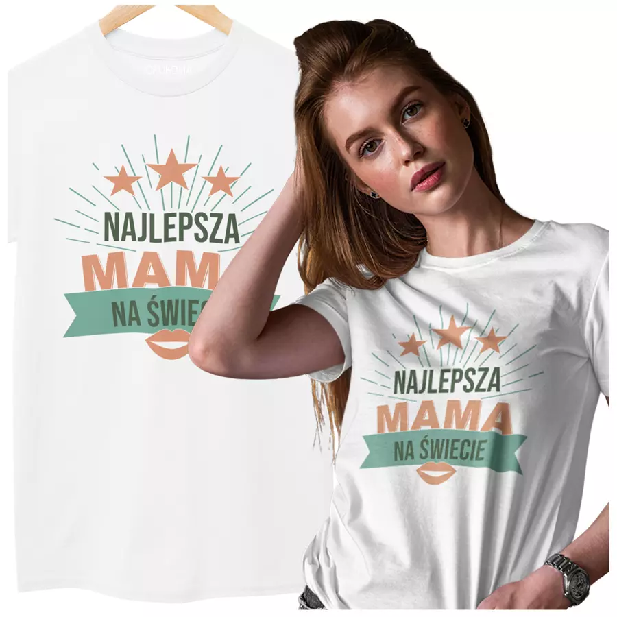 KOSZULKA dla Mamy na Dzień Matki z napisem: "Najlepsza mama na świecie" kolor biały
