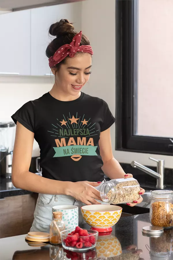 KOSZULKA dla Mamy na Dzień Matki z napisem: "Najlepsza mama na świecie" kolor czarny