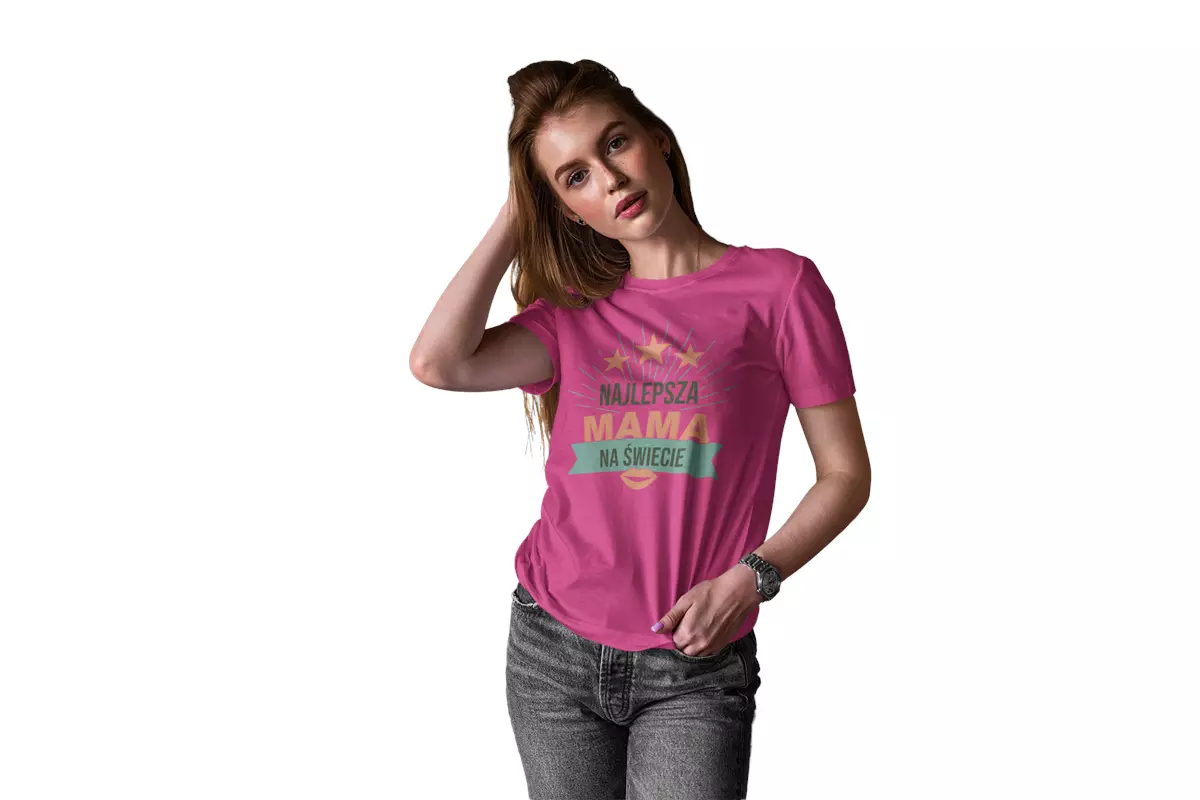 KOSZULKA dla Mamy na Dzień Matki z napisem: "Najlepsza mama na świecie" kolor różowy
