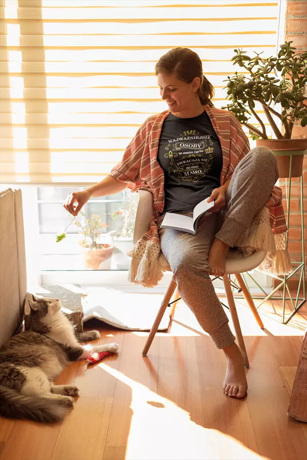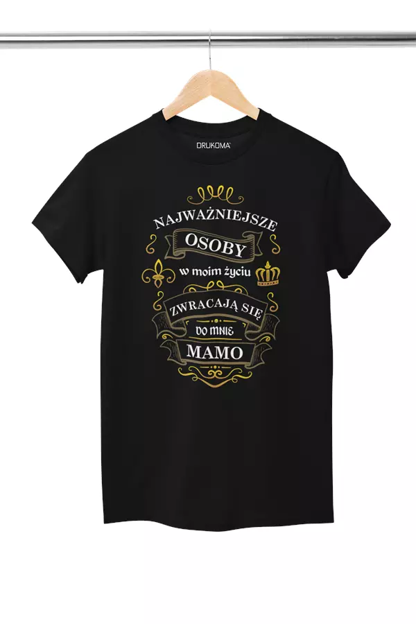 KOSZULKA dla Mamy na Dzień Matki z napisem: "Najważniejsze osoby w moim życiu zwracają się do mnie MAMO" kolor czarny