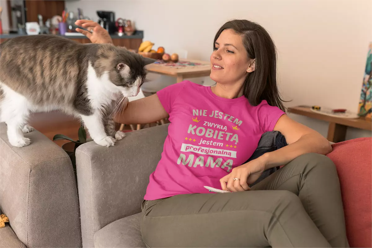 KOSZULKA dla Mamy na Dzień Matki z napisem: "Nie jestem zwykłą kobietą jestem profesjonalną MAMĄ" kolor różowy