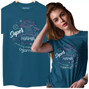KOSZULKA dla Mamy na Dzień Matki z napisem: "Super MAMA bo kto inny mógłby to wszystko ogarnąć?" kolor petrol