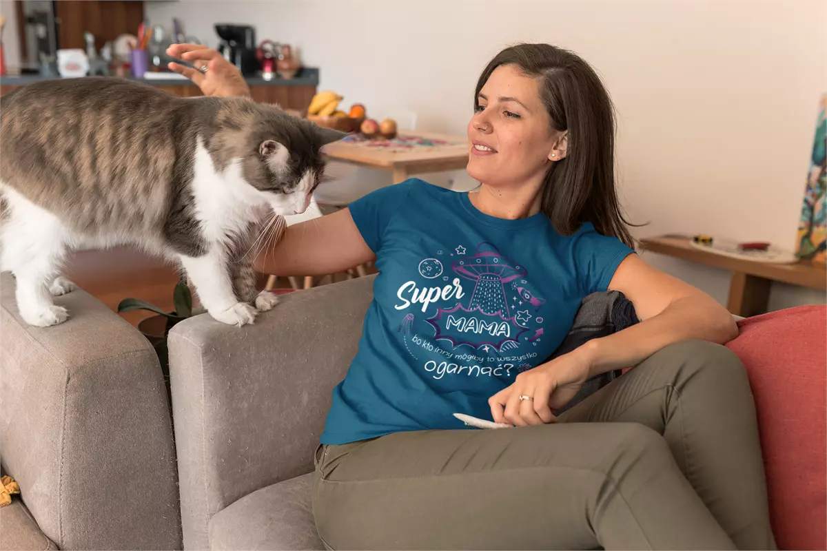 Koszulka z napisem: "Super MAMA bo kto inny mógłby to wszystko ogarnąć?".