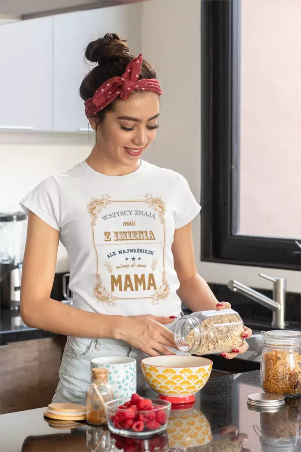 KOSZULKA dla Mamy na Dzień Matki z napisem: "Wszyscy znają mnie z imienia" kolor biały