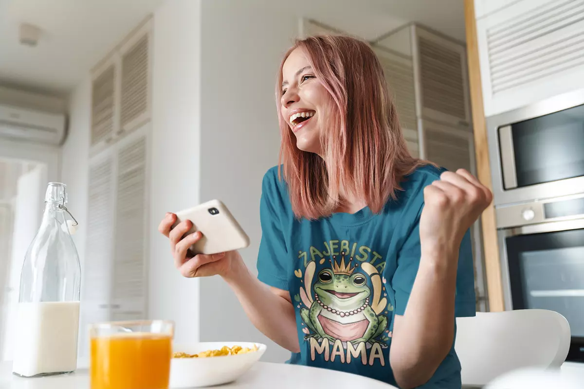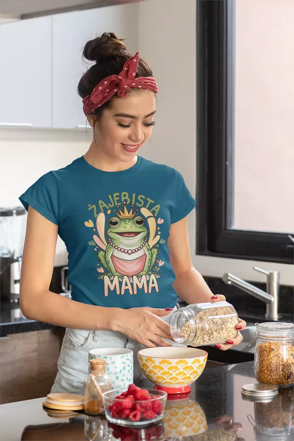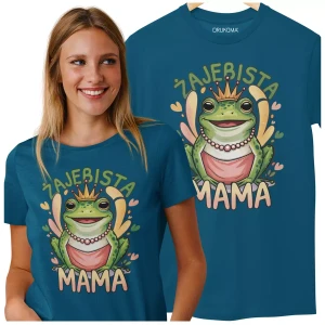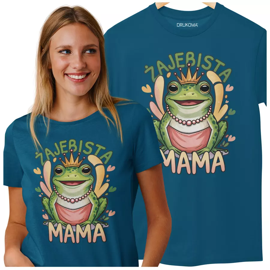 KOSZULKA dla Mamy na Dzień Matki z żabą z napisem: "ŻAJEBISTA MAMA" kolor petrol