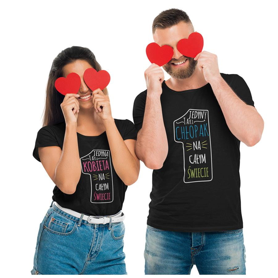 Koszulki "Jedyny tak chłopak & Jedyna taka dziewczyna na świecie" z kolorowym nadrukiem – idealny prezent na Walentynki! Odkryj nasze specjalne zestawy dla par, dostępne w limitowanej edycji. Każdy zestaw zawiera: