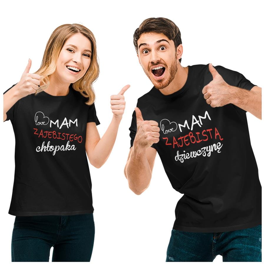 KOSZULKI DLA PAR NA WALENTYNKI PREZENT MAM ZAJEBISTĄ DZIEWCZYNĘ MAM ZAJEBISTEGO CHŁOPAKA