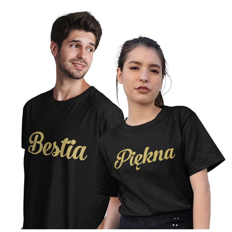 Koszulki "Piękna & Bestia" ze złotym nadrukiem – idealny prezent na Walentynki! Odkryj nasze specjalne zestawy dla par, dostępne w limitowanej edycji. Każdy zestaw zawiera: