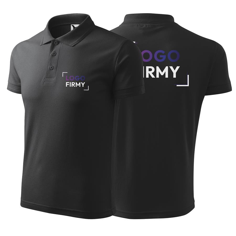 Koszulka antracytowy melanż polo z logo na sercu i plecach męska z nadrukiem logo firmy 200g 203 kolor 20 koszulka polo