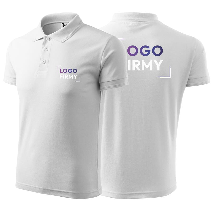 Koszulka biała polo z logo na sercu i plecach męska z nadrukiem logo firmy 200g 203 kolor 00 koszulka polo
