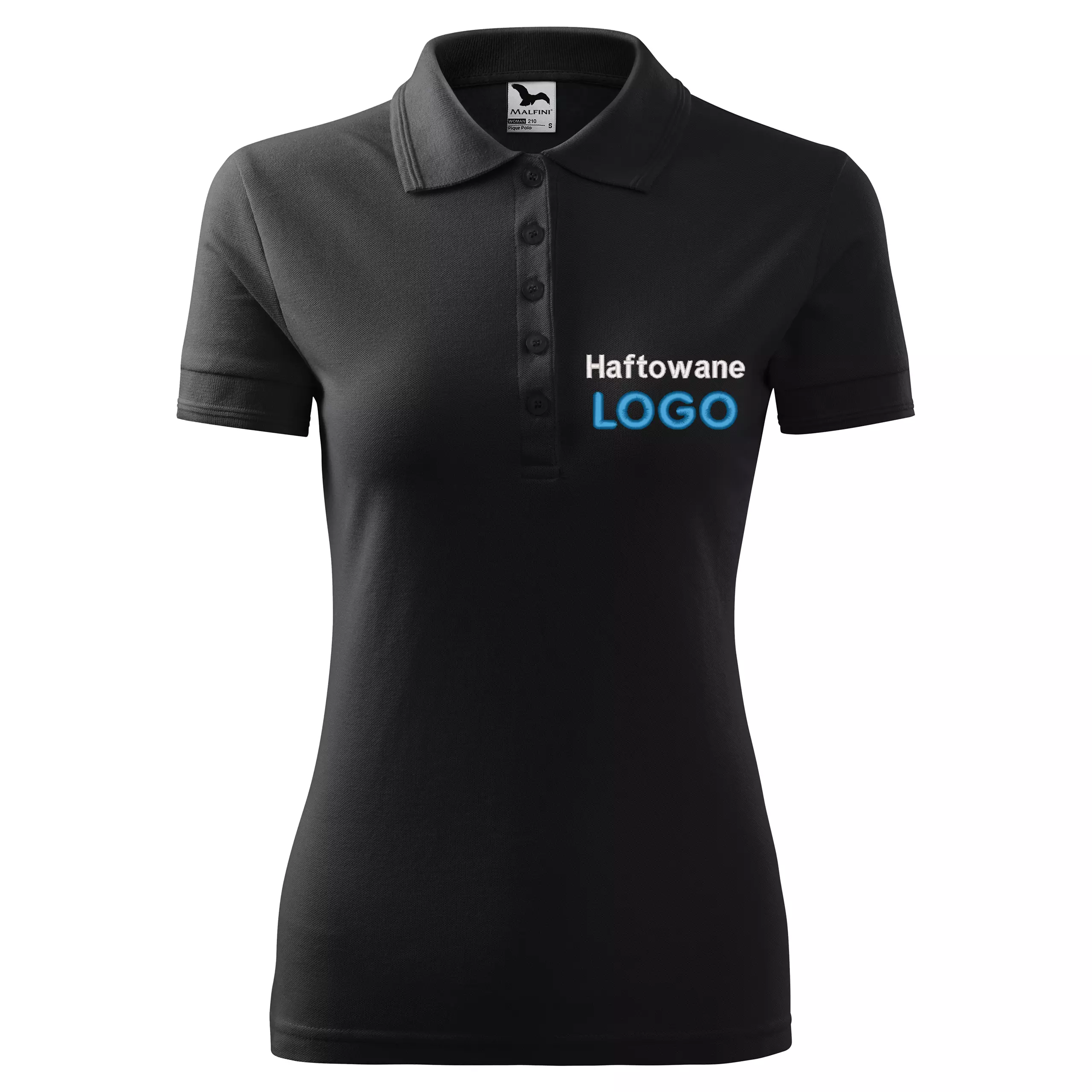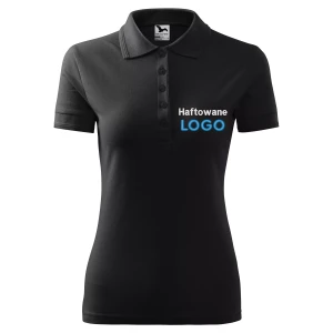 Koszulka czarna polo z logo na sercu damska z haftem logo firmy 200g 210 kolor 01 koszulka polo