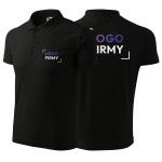Koszulka czarna polo z logo na sercu i plecach męska z nadrukiem logo firmy 200g 203 kolor 01 koszulka polo