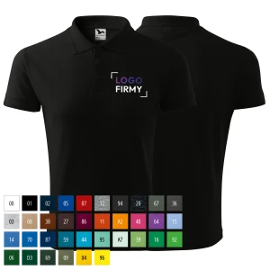 Koszulka czarna polo z logo na sercu męska z nadrukiem logo firmy 200g 203 koszulka polo WSZYSTKIE KOLORY