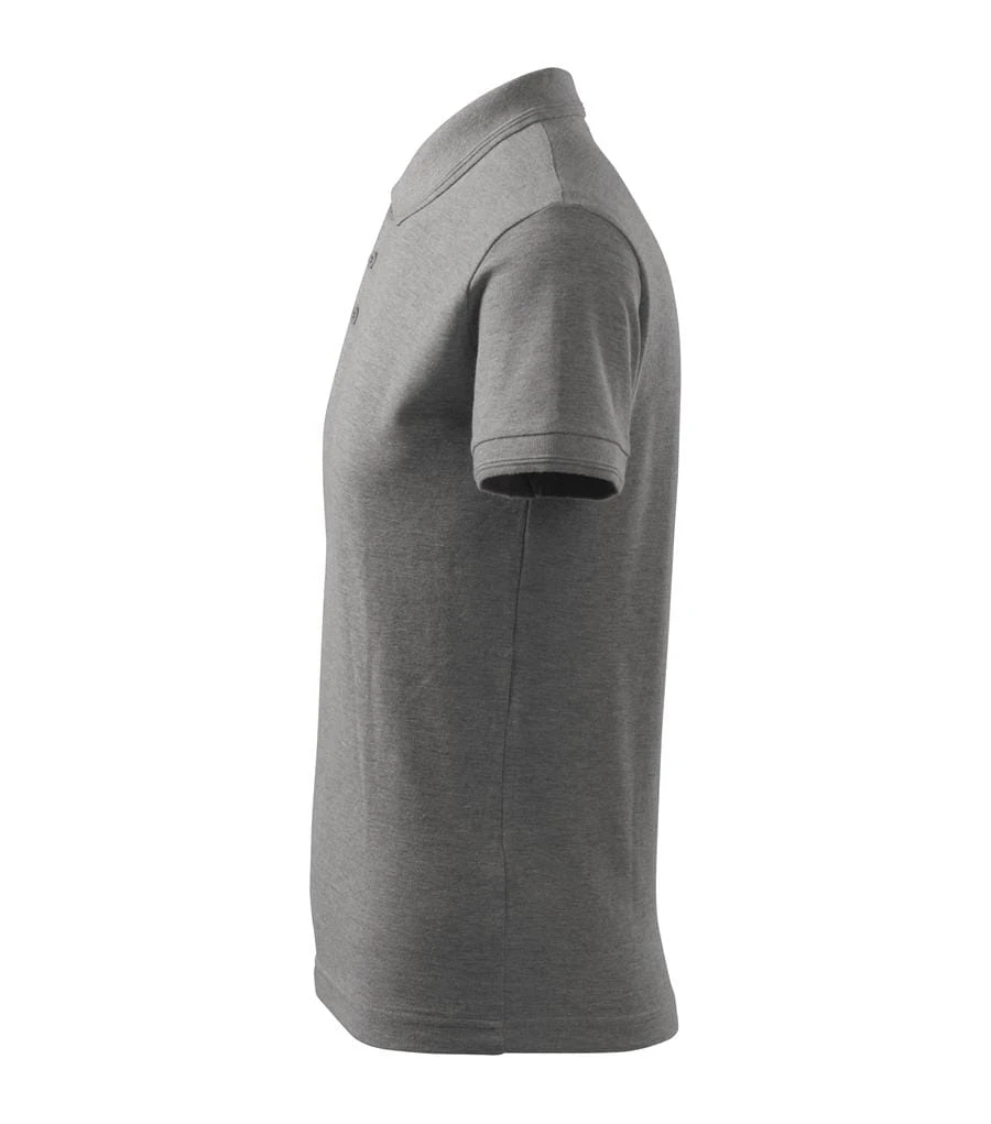 Koszulka polo męska Pique Polo 203 to klasyczny model o gramaturze 200 g/m², wykonany z wytrzymałej dzianiny typu Pique (65 % bawełna, 35 % poliester). Charakteryzuje się krojem ze szwami bocznymi oraz eleganckim wykończeniem kołnierzyka i mankietów z podwójnym ozdobnym przetłoczeniem z dzianiny ściągaczowej 1:1. Posiada plisy z trzema guzikami w kolorze materiału, szew na ramionach wzmocniony taśmą oraz wewnętrzną część lamówki wykończoną taśmą z tego samego materiału. Wyposażona w tkaną metkę, koszulka stanowi doskonałą bazę pod profesjonalne znakowanie: haft, sitodruk, transfer oraz lithotransfer.