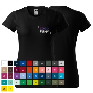 Koszulka czarna z krótkim rękawem z logo na sercu damska z nadrukiem logo firmy 160g BASIC134 koszulka krótki rękaw WSZYSTKIE KOLORY
