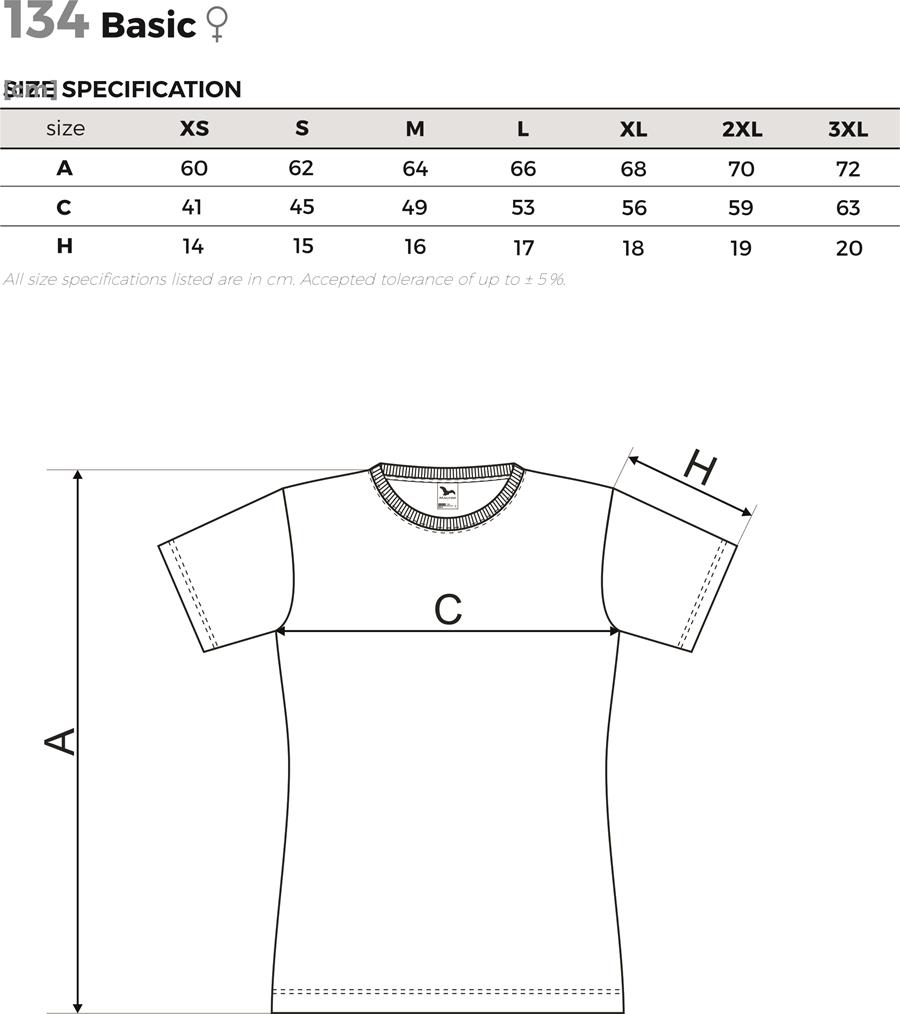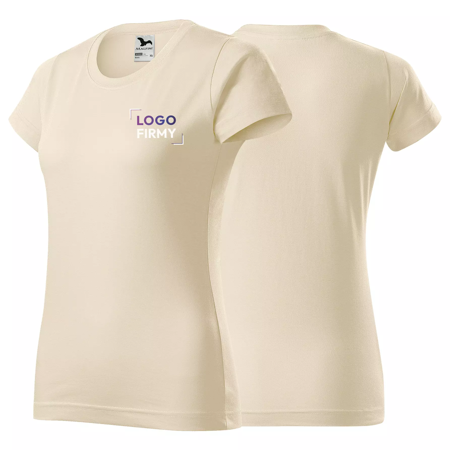 Koszulka damska Basic 134 to dopasowany T-shirt o gramaturze 160 g/m², wykonany w 100% z bawełny (Single Jersey) z wykończeniem silikonowym, które zapewnia wyjątkową gładkość i miękkość materiału. Model posiada taliowany krój ze szwami bocznymi, wąską lamówkę przy dekolcie z dodatkiem 5% elastanu oraz wzmacniający szew na ramionach i taśmę na karku z materiału wierzchniego. Wyposażona w satynową metkę, idealnie nadaje się pod profesjonalne znakowanie: druk cyfrowy, haft, sitodruk, transfer oraz lithotransfer.