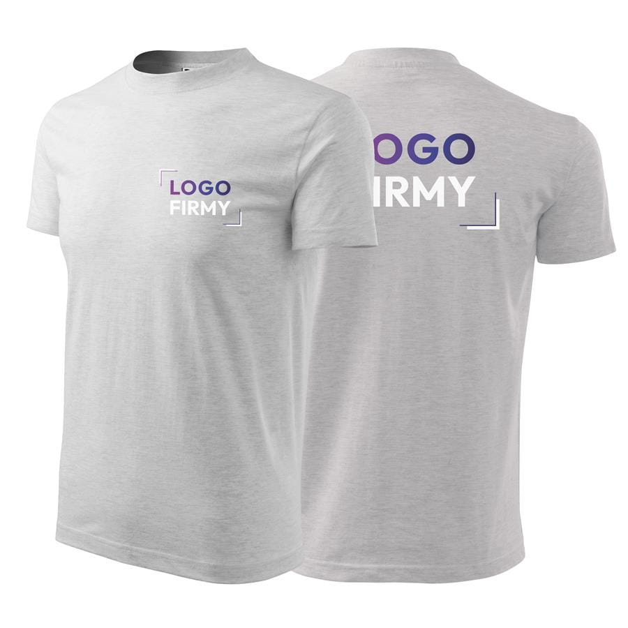 Koszulka czarna z krótkim rękawem z logo na sercu i plecach unisex z nadrukiem logo firmy 200g HEAVY110 koszulka krótki rękaw WSZYSTKIE KOLORY