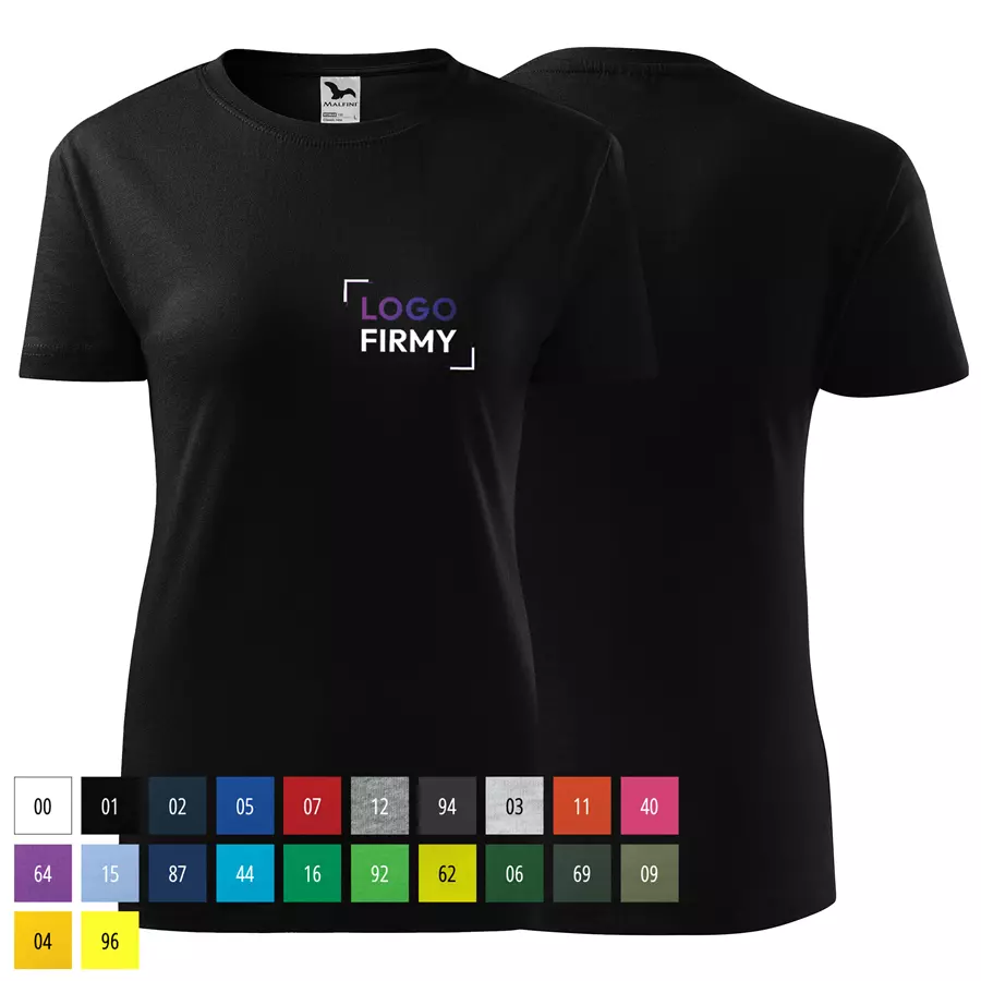 Koszulka damska 145g Classic New 133 z logo własnym nadrukiem na sercu odzież reklamowa WSZYSTKIE KOLORY