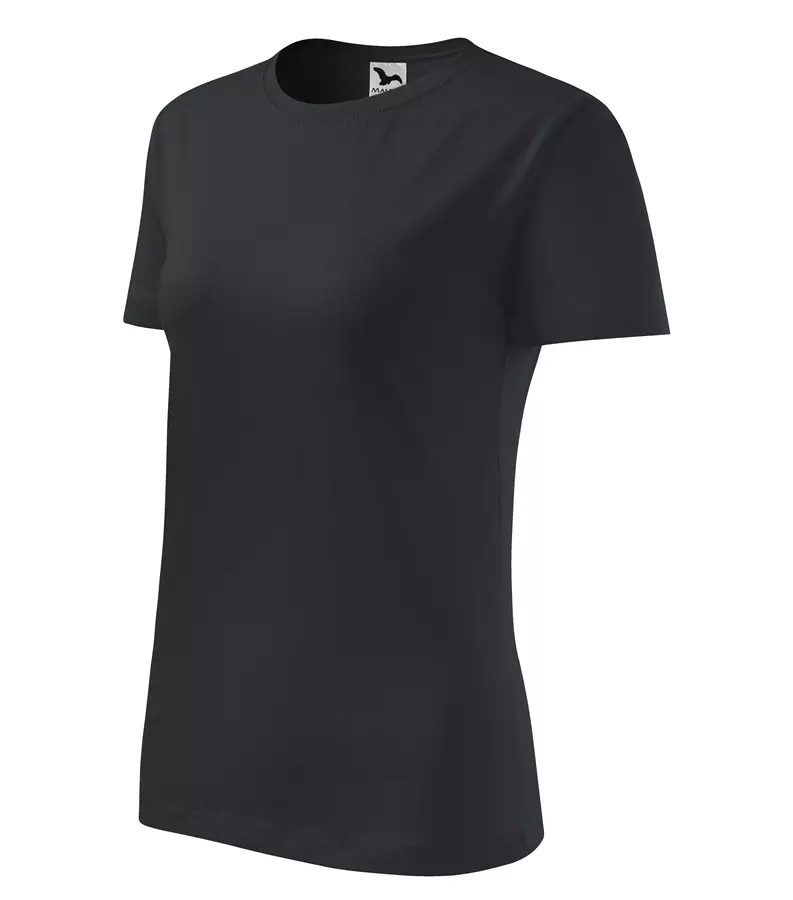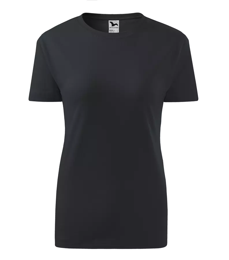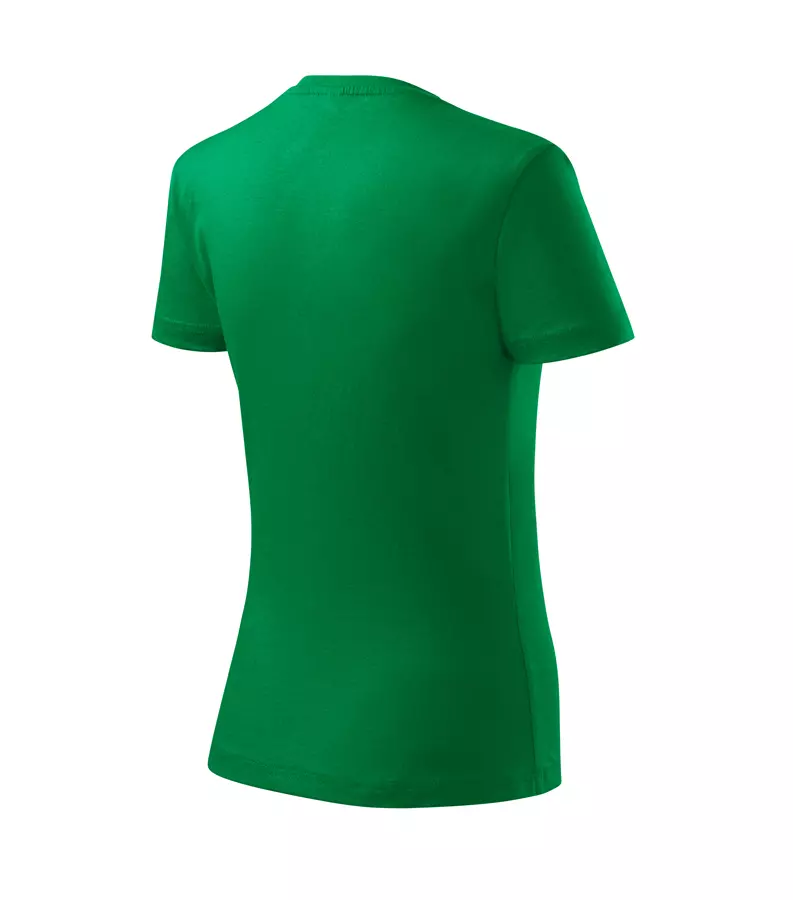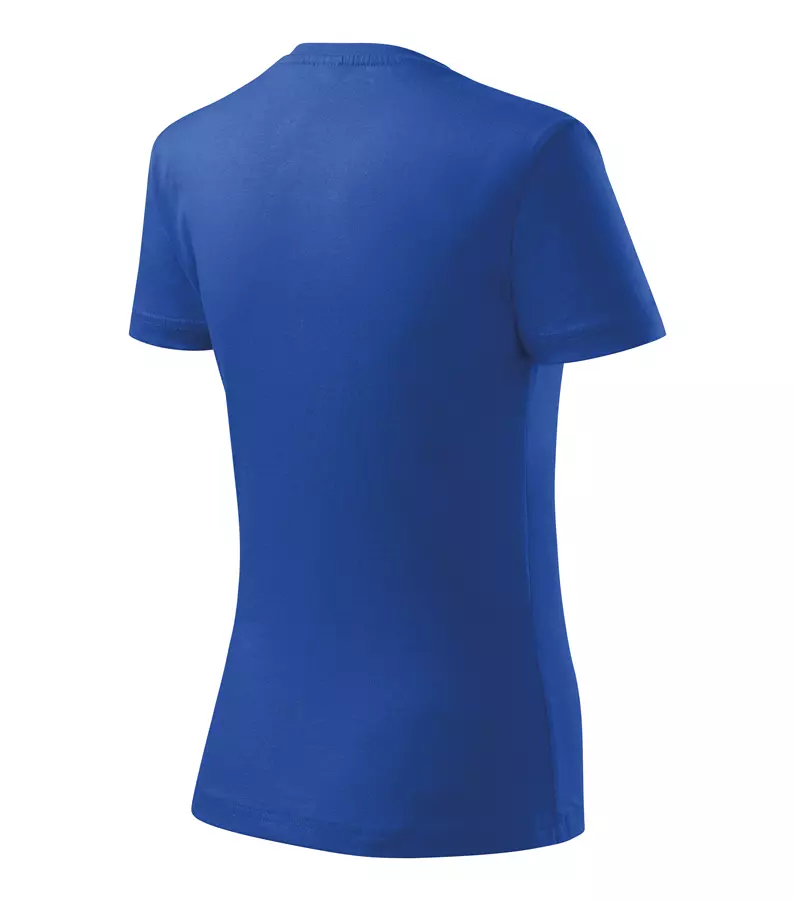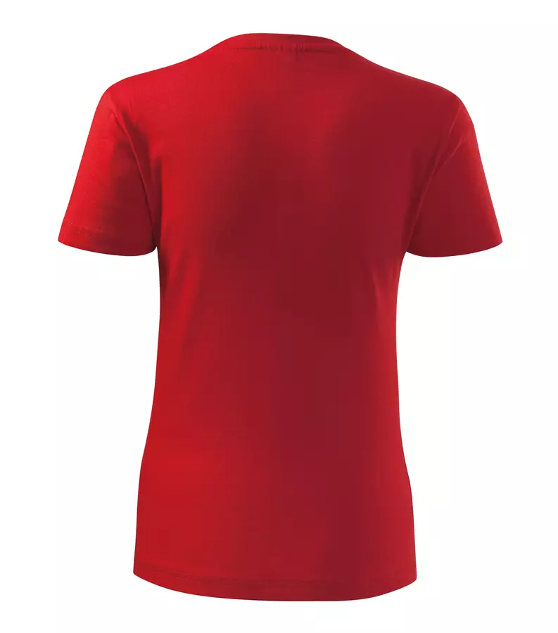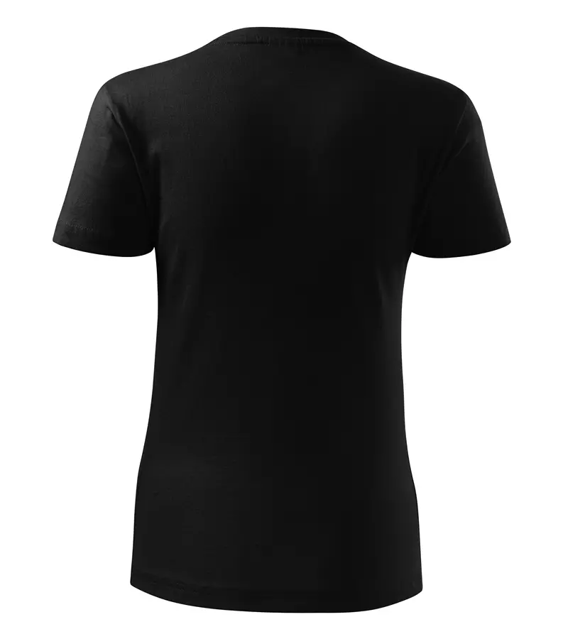 Koszulka damska Classic New 133 to dopasowany T-shirt o gramaturze 145 g/m², wykonany w 100% z bawełny (Single Jersey), który dzięki krojowi ze szwami bocznymi doskonale podkreśla sylwetkę. Model posiada wąską lamówkę z dzianiny ściągaczowej 1:1, szew wzmacniający na ramionach oraz lamówkę na karku wzmocnioną taśmą z materiału wierzchniego, co zapewnia trwałość i komfort noszenia. Wyposażona w satynową metkę, koszulka stanowi idealną bazę pod znakowanie metodami takimi jak druk cyfrowy, sitodruk, transfer cyfrowy oraz lithotransfer.