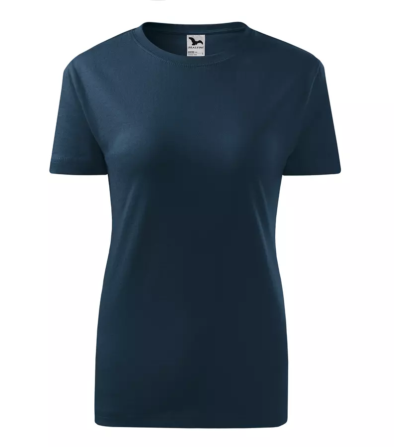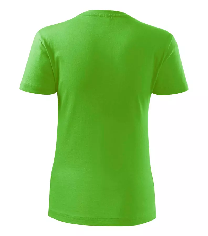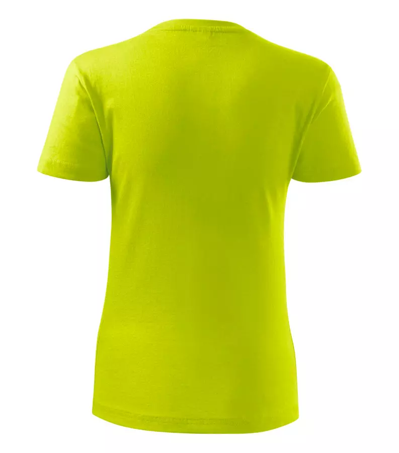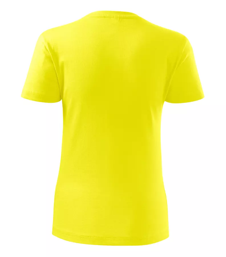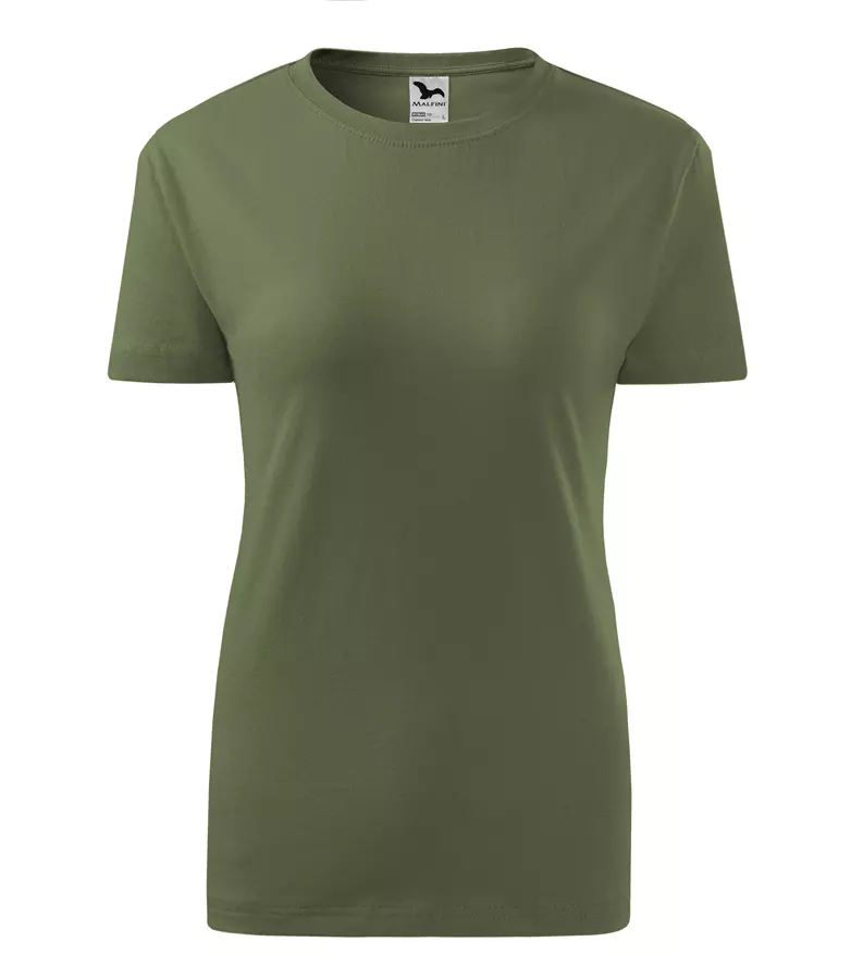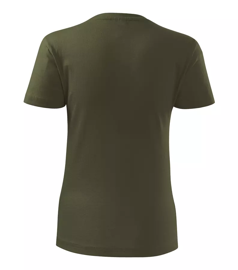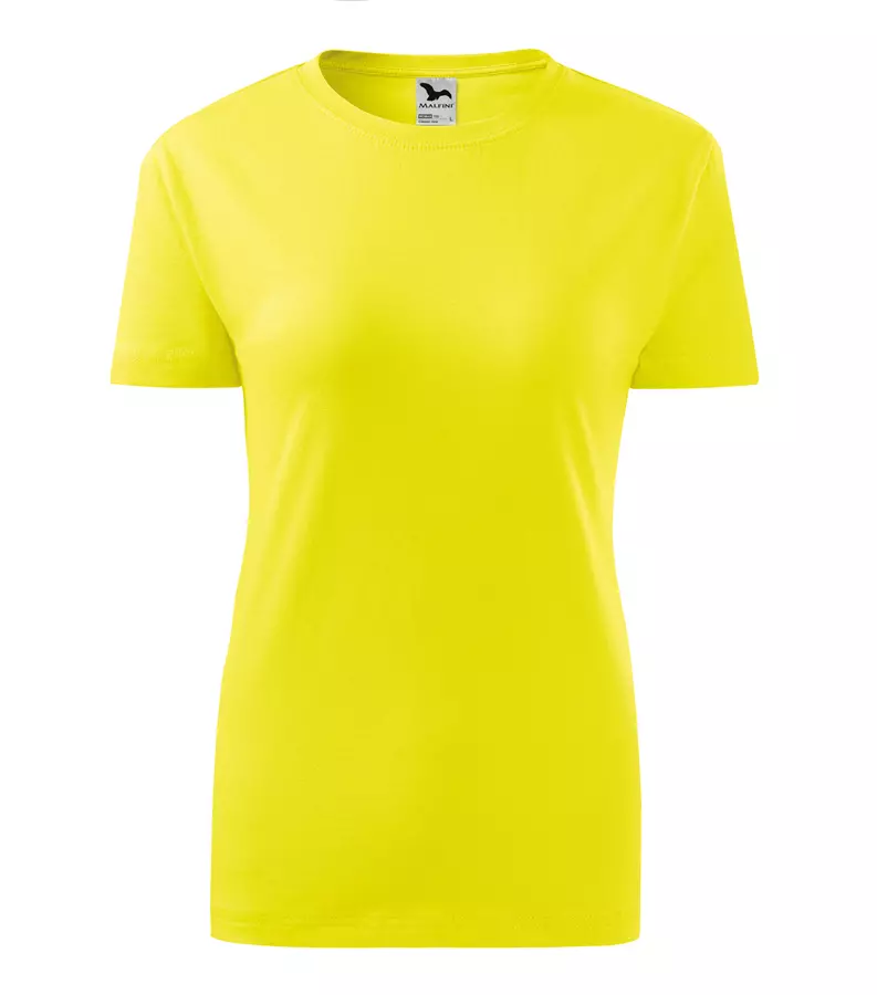 Koszulka damska Classic New 133 to dopasowany T-shirt o gramaturze 145 g/m², wykonany w 100% z bawełny (Single Jersey), który dzięki krojowi ze szwami bocznymi doskonale podkreśla sylwetkę. Model posiada wąską lamówkę z dzianiny ściągaczowej 1:1, szew wzmacniający na ramionach oraz lamówkę na karku wzmocnioną taśmą z materiału wierzchniego, co zapewnia trwałość i komfort noszenia. Wyposażona w satynową metkę, koszulka stanowi idealną bazę pod znakowanie metodami takimi jak druk cyfrowy, sitodruk, transfer cyfrowy oraz lithotransfer.
