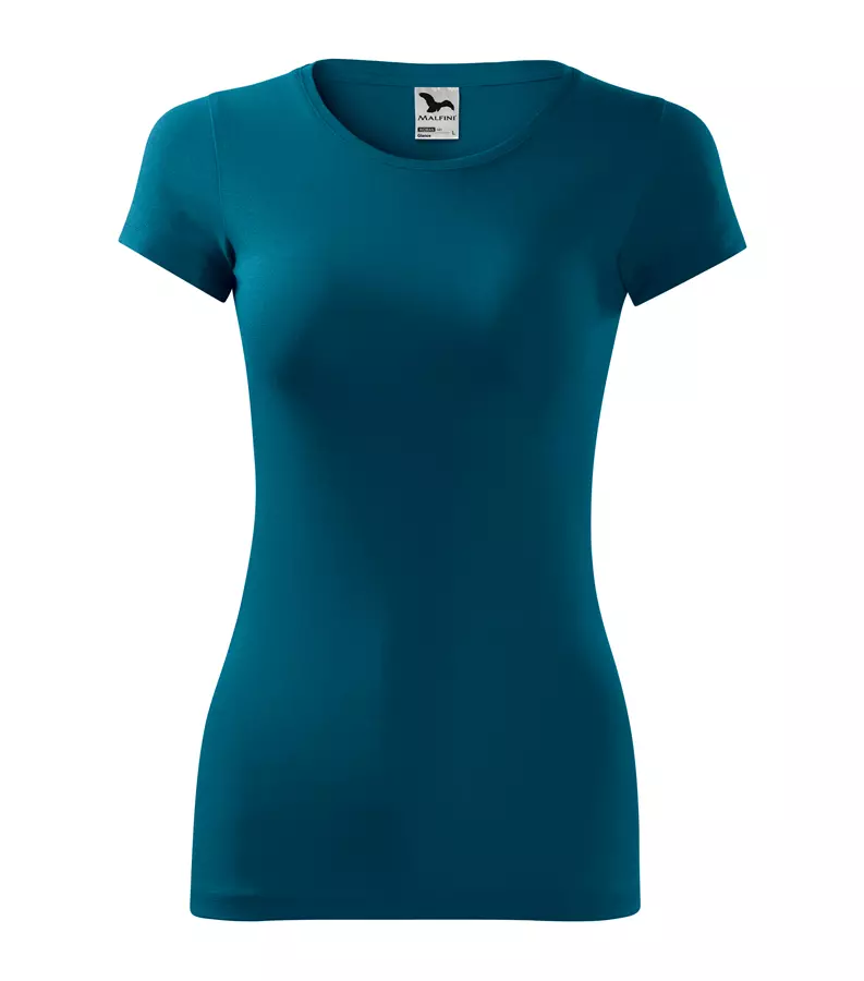 Koszulka damska Glance 141 to elastyczny T-shirt o gramaturze 180 g/m², wykonany z mieszanki bawełny (95%) i elastanu (5%), co zapewnia doskonałe utrzymanie kształtu oraz komfort noszenia. Model charakteryzuje się krojem slim-fit ze szwami bocznymi, krótkimi dopasowanymi rękawami oraz wąską lamówką z materiału wierzchniego przy dekolcie. Wyposażona w szew wzmacniający na ramionach, taśmę na karku oraz satynową metkę, koszulka stanowi idealną bazę pod profesjonalne znakowanie: druk cyfrowy, haft, sitodruk, transfer oraz lithotransfer.