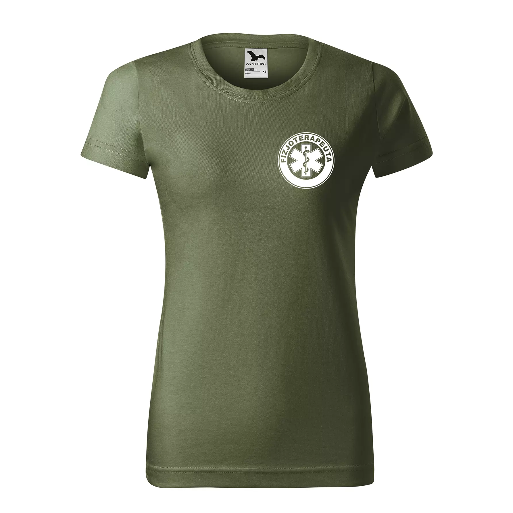 Koszulka damska BASIC 134 medyczna z krótkim rękawem z logo na sercu i plecach z nadrukiem FIZJOTERAPEUTA logo 160 g/m² koszulka krótki rękaw WSZYSTKIE KOLORY