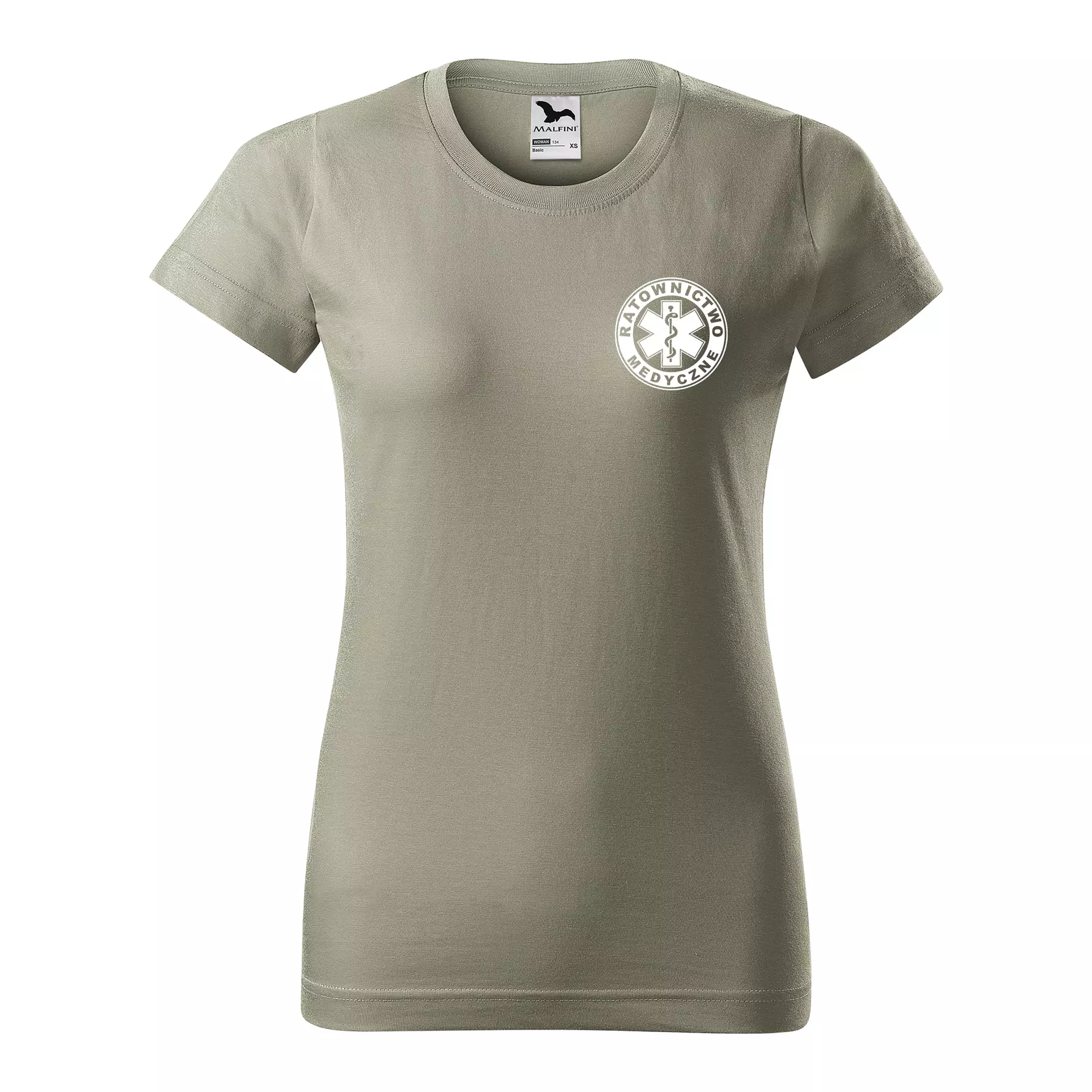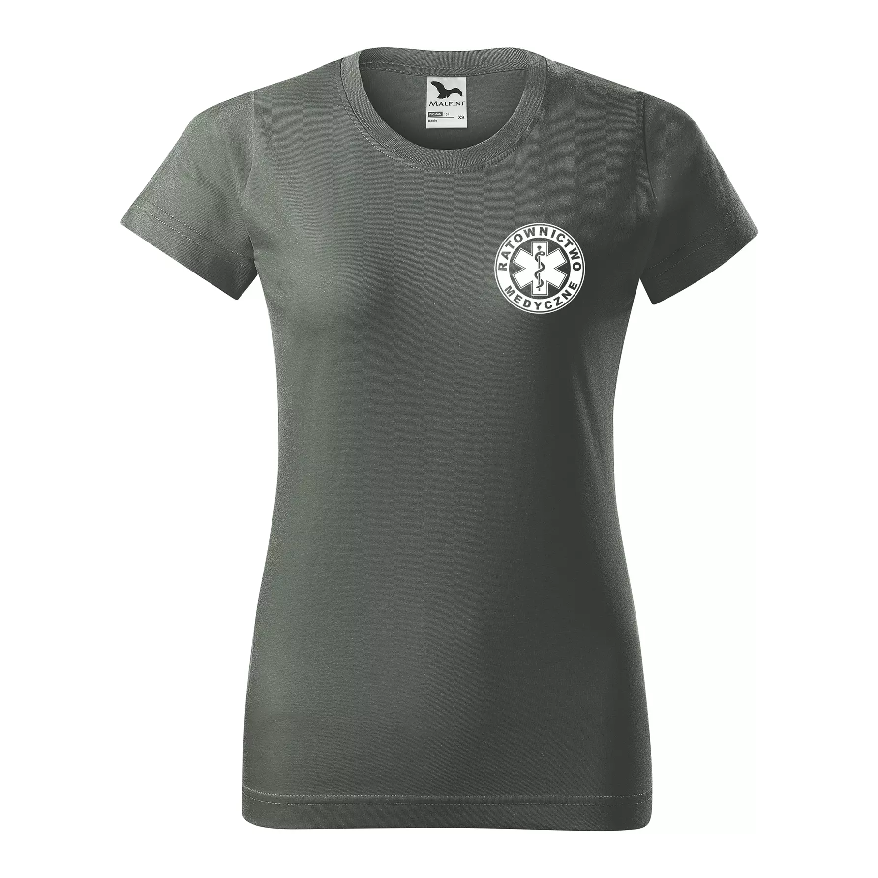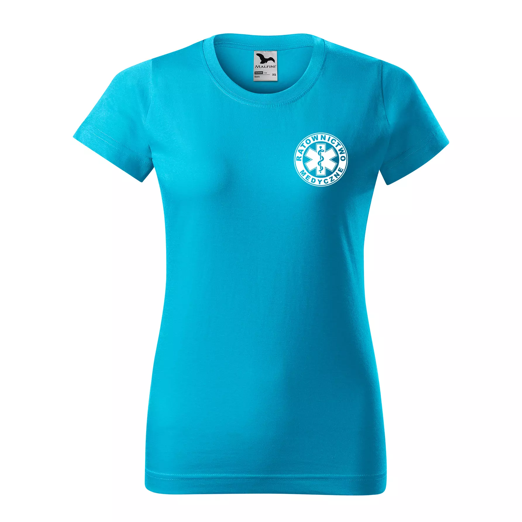 Koszulka damska BASIC 134 medyczna z krótkim rękawem z logo na sercu i plecach z nadrukiem RATOWNICTWO MEDYCZNE logo 160 g/m² koszulka krótki rękaw WSZYSTKIE KOLORY
