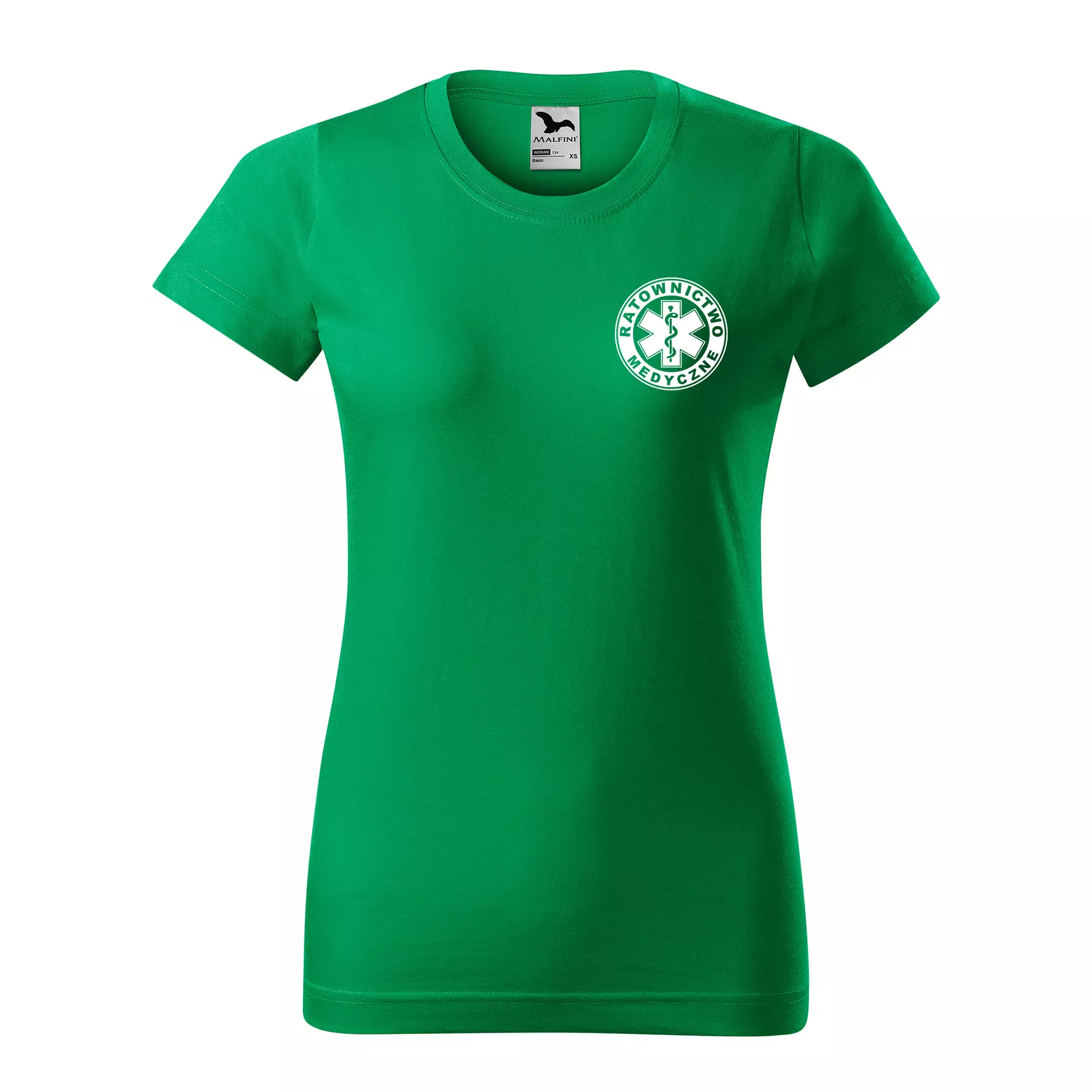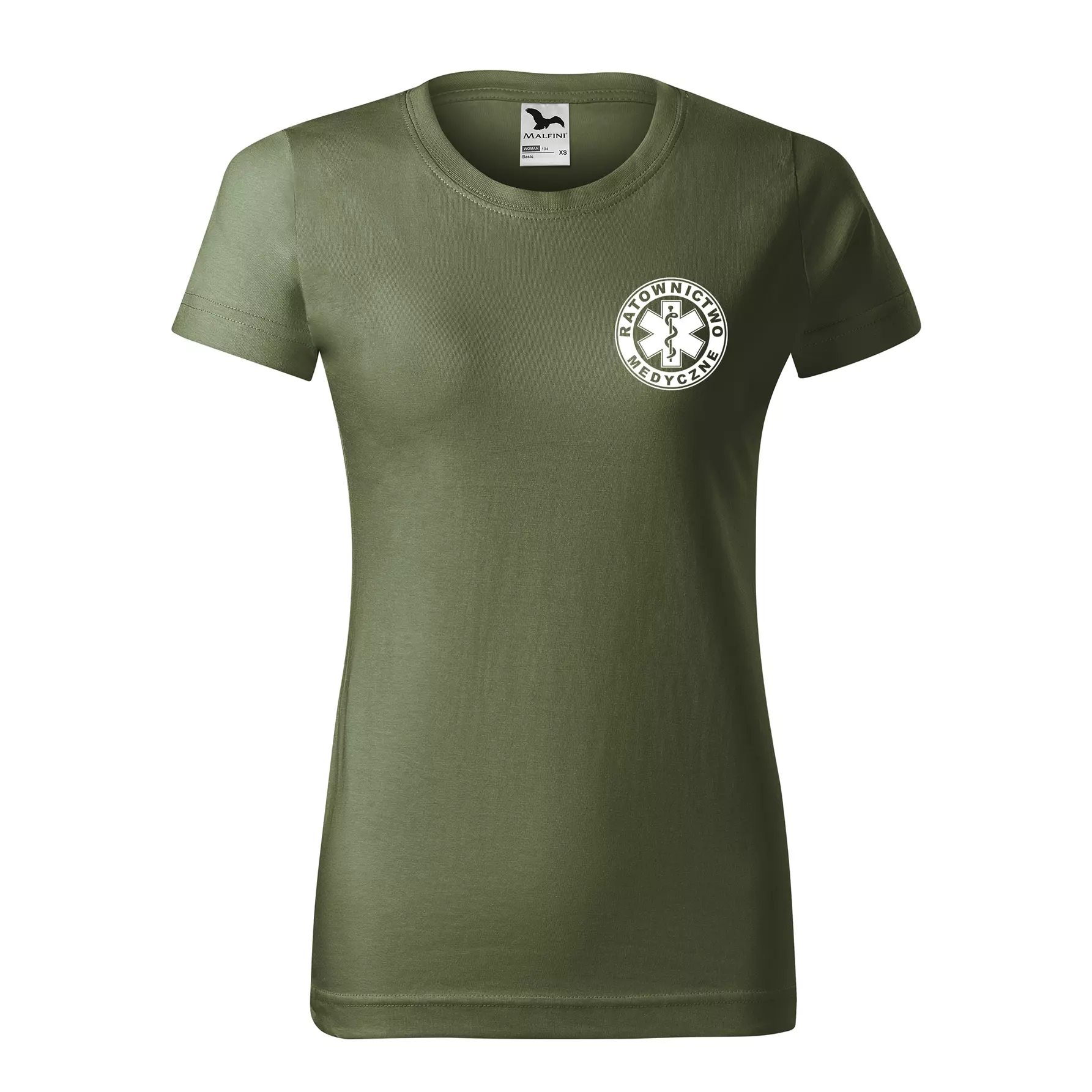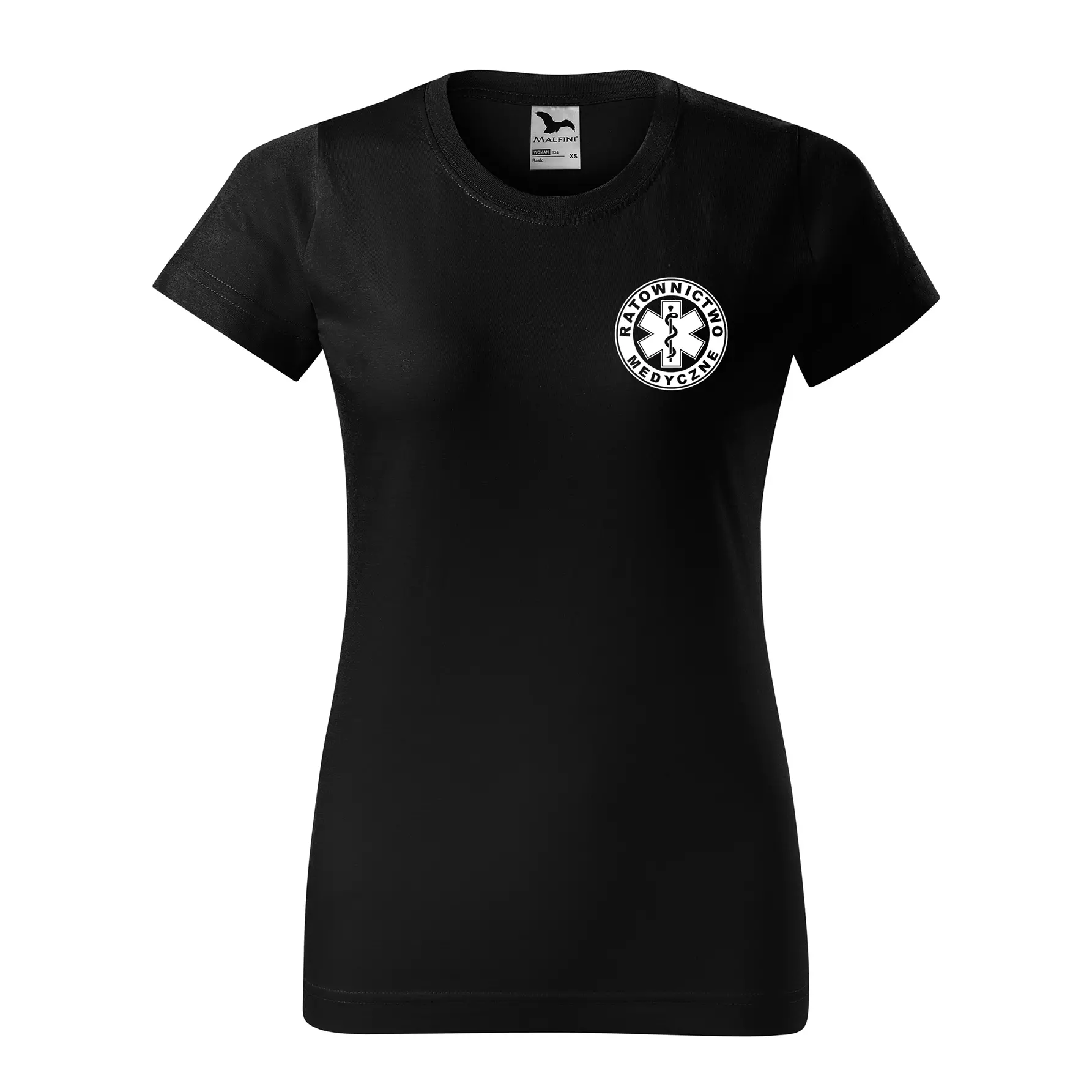 Koszulka damska BASIC 134 medyczna z krótkim rękawem z logo na sercu i plecach z nadrukiem RATOWNICTWO MEDYCZNE logo 160 g/m² koszulka krótki rękaw WSZYSTKIE KOLORY