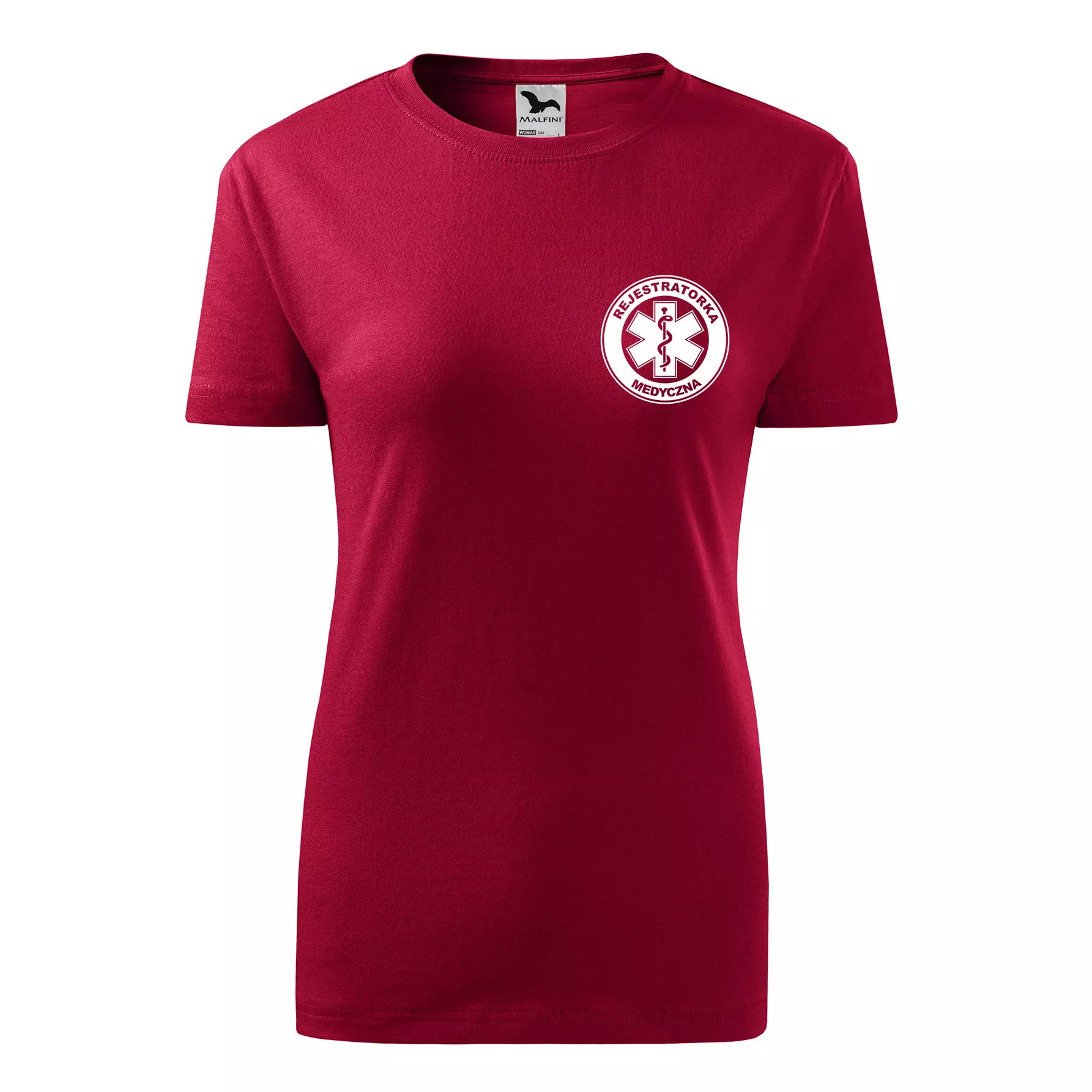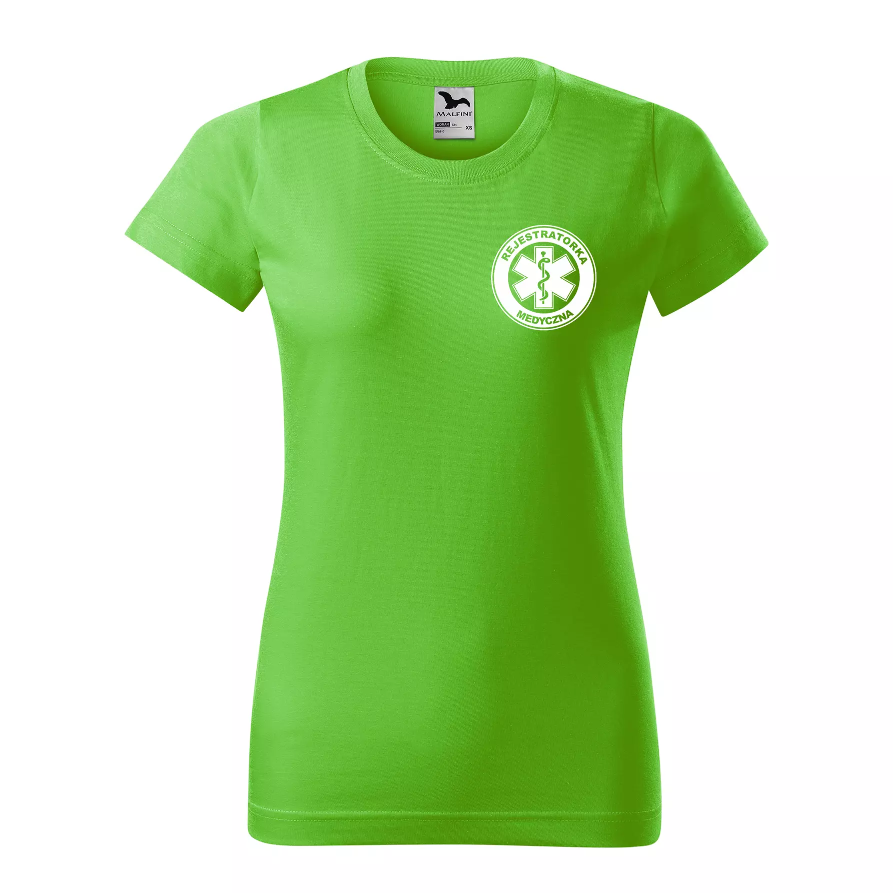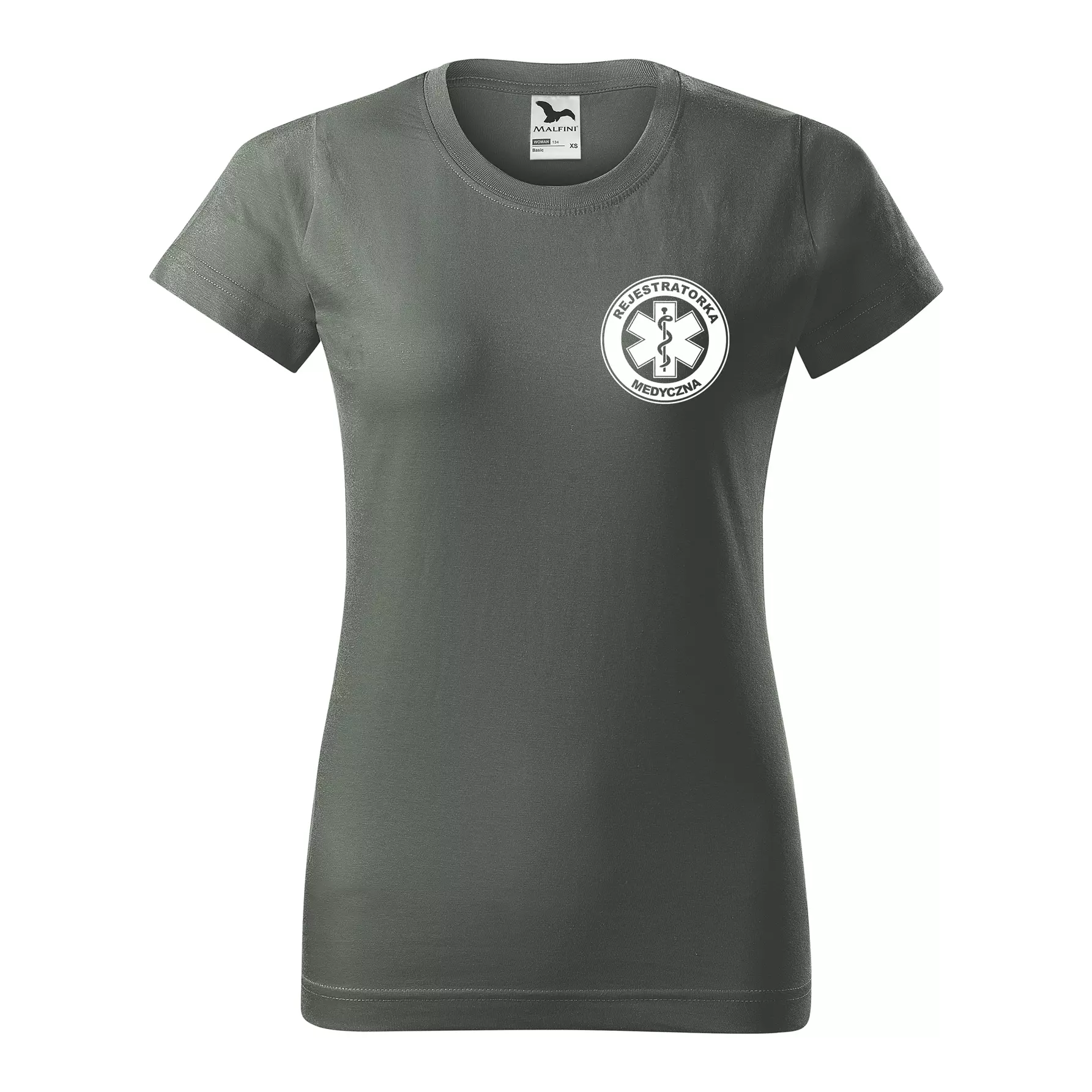 Koszulka damska BASIC 134 medyczna z krótkim rękawem z logo na sercu i plecach z nadrukiem REJESTRATORKA MEDYCZNA logo 160 g/m² koszulka krótki rękaw WSZYSTKIE KOLORY