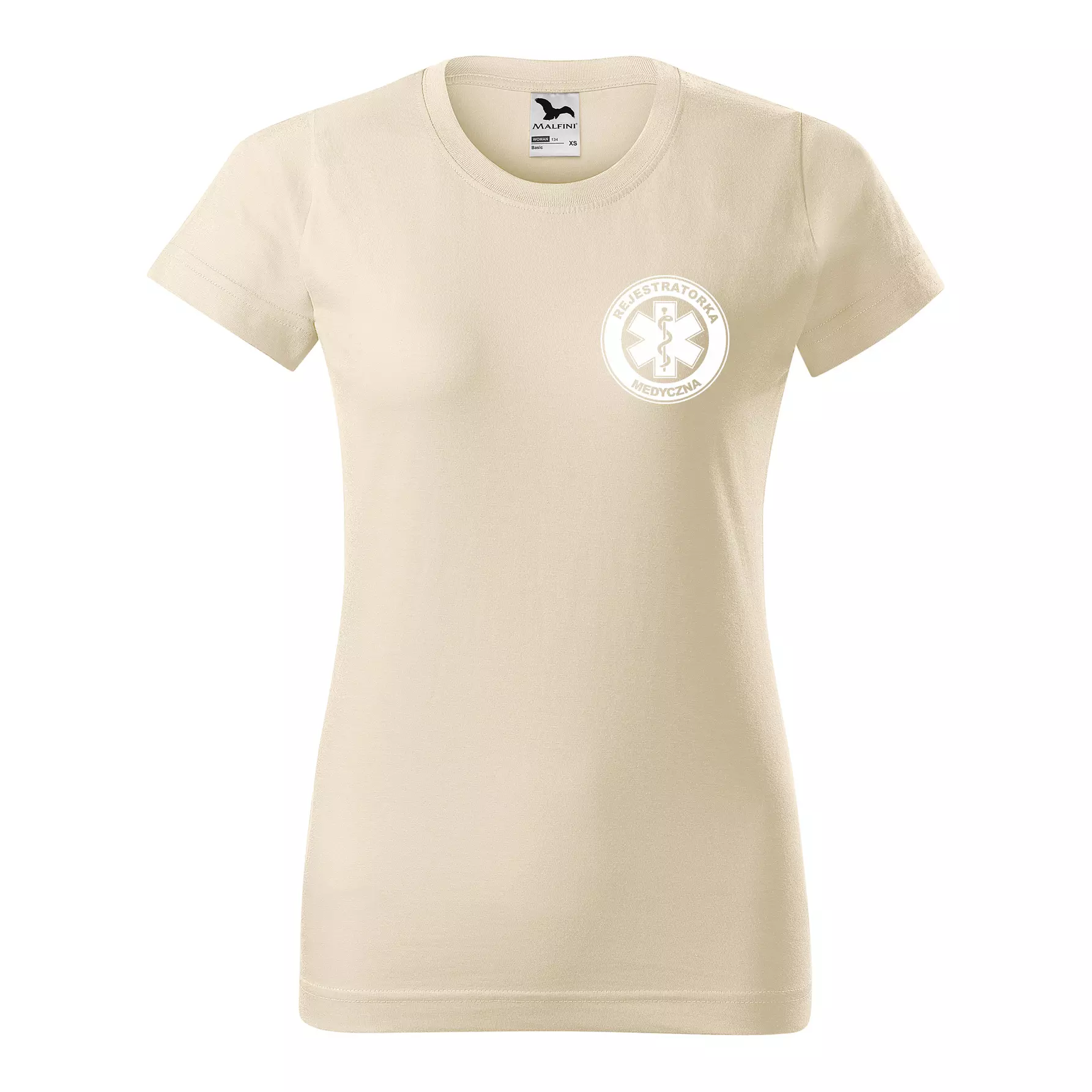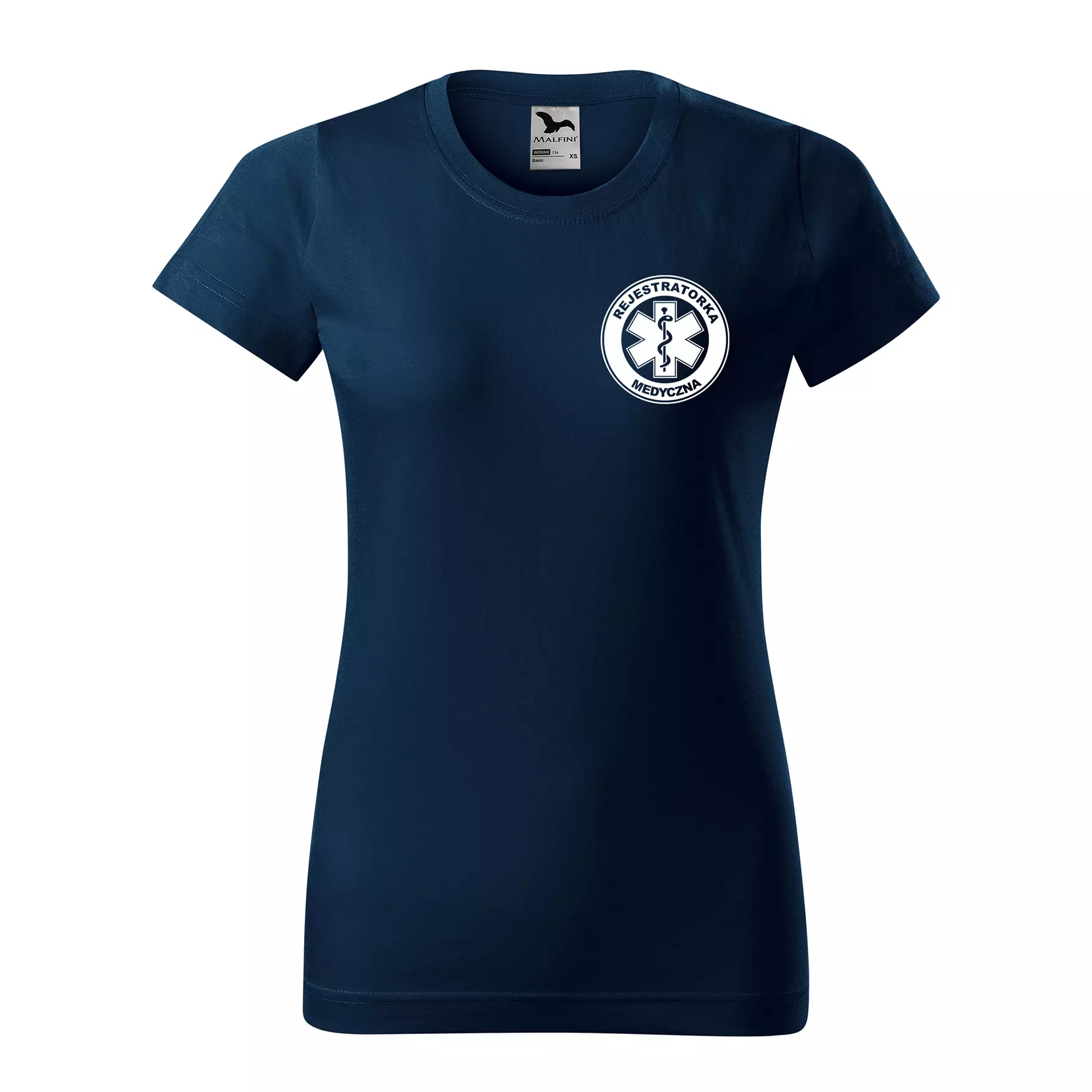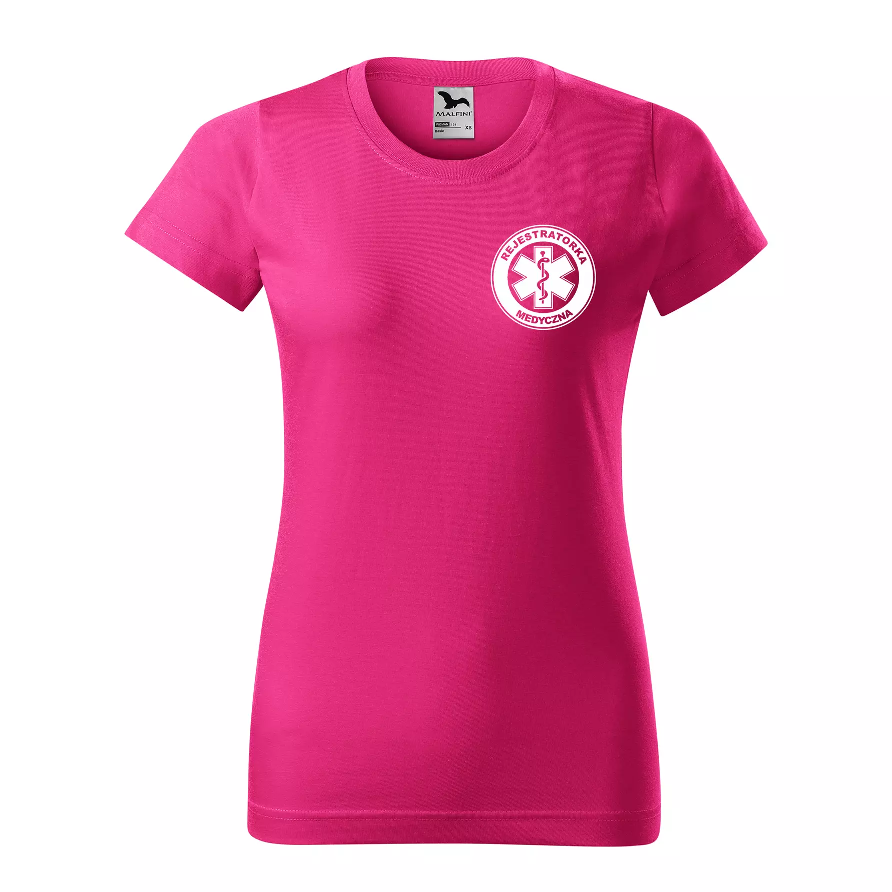 Koszulka damska BASIC 134 medyczna z krótkim rękawem z logo na sercu i plecach z nadrukiem REJESTRATORKA MEDYCZNA logo 160 g/m² koszulka krótki rękaw WSZYSTKIE KOLORY