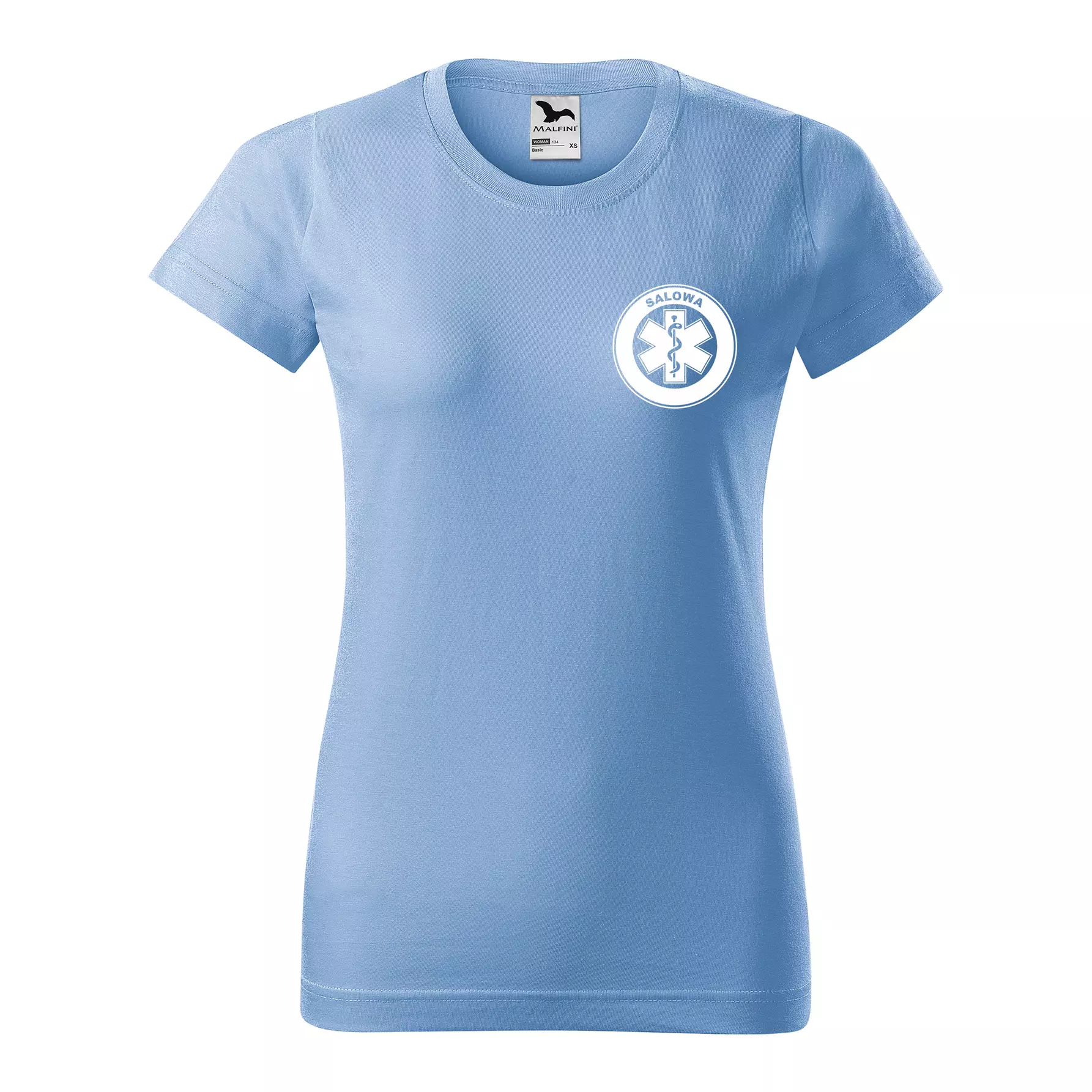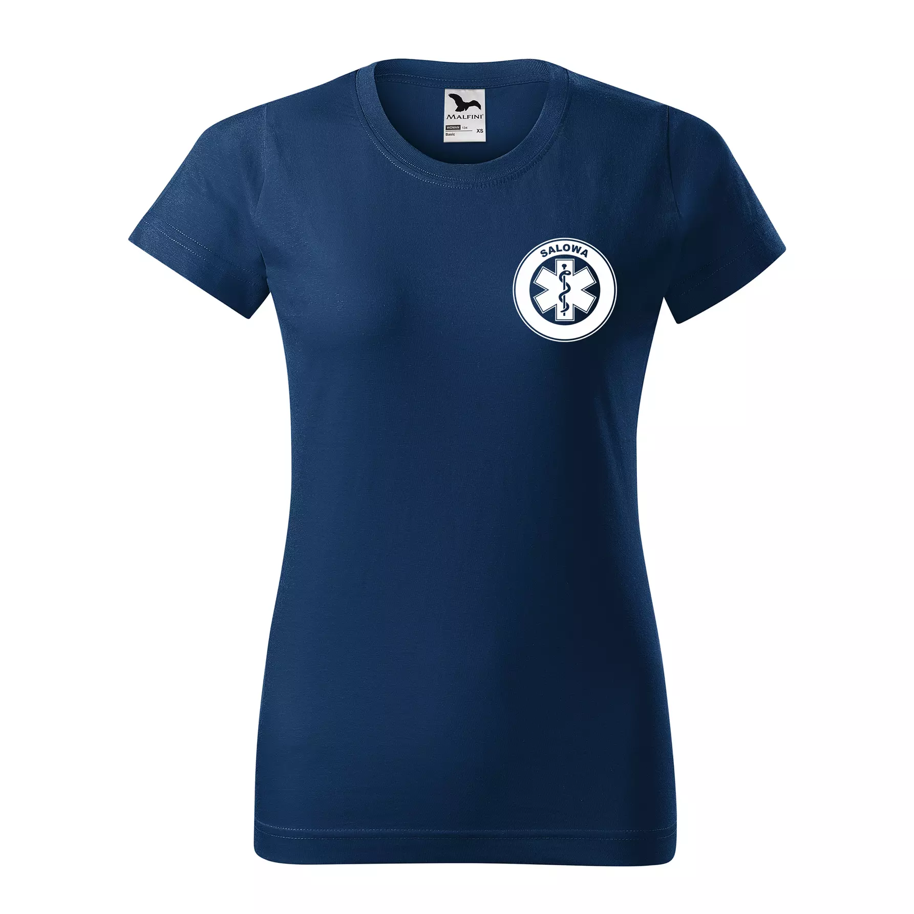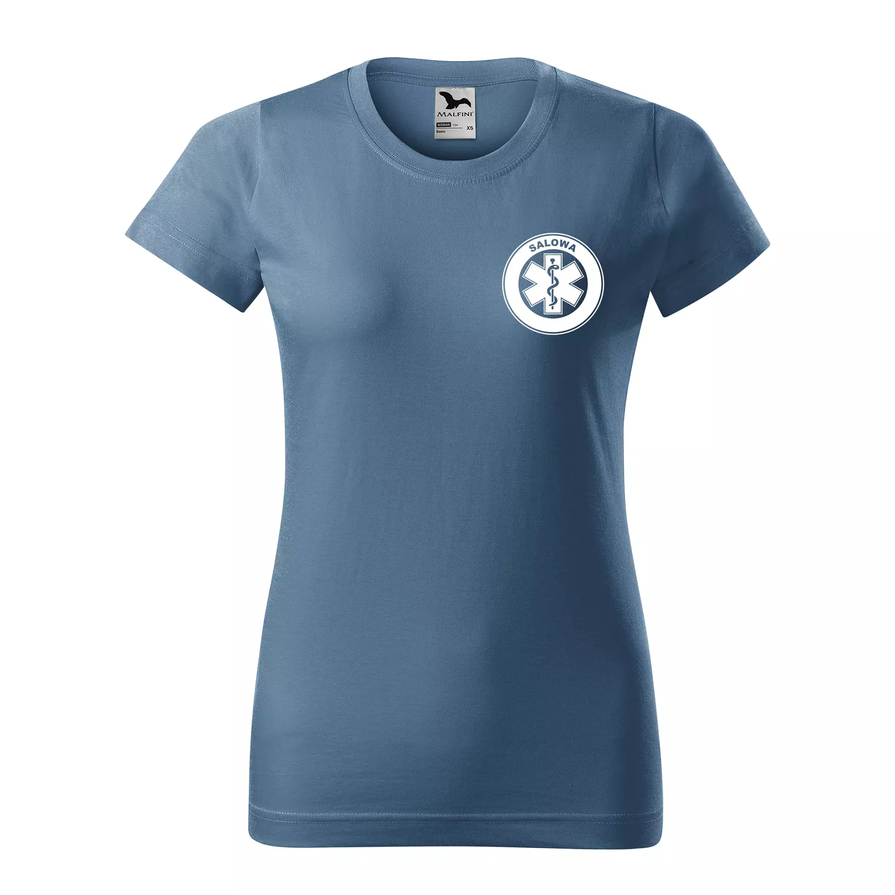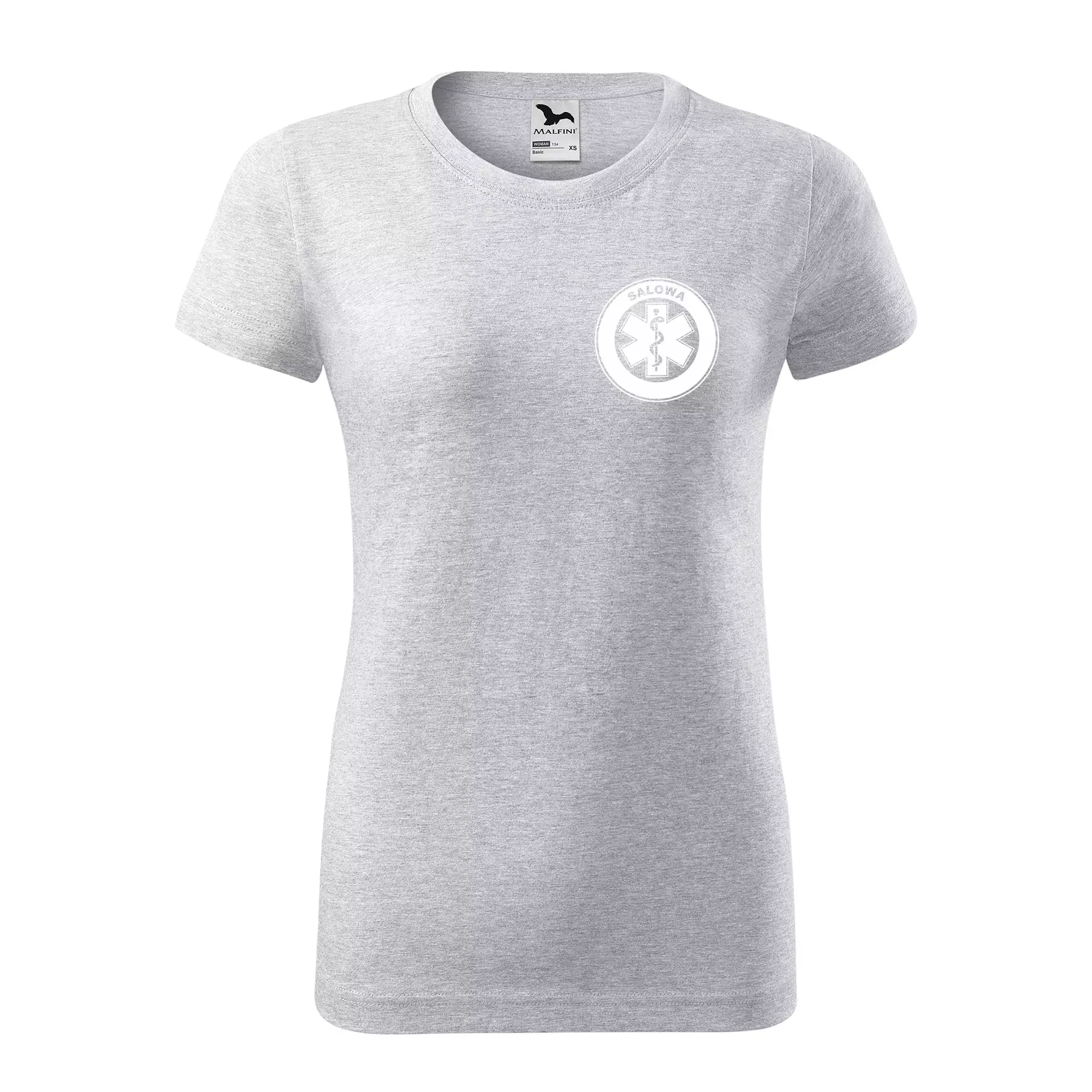 Koszulka damska BASIC 134 medyczna z krótkim rękawem z logo na sercu i plecach z nadrukiem SALOWA logo 160 g/m² koszulka krótki rękaw WSZYSTKIE KOLORY