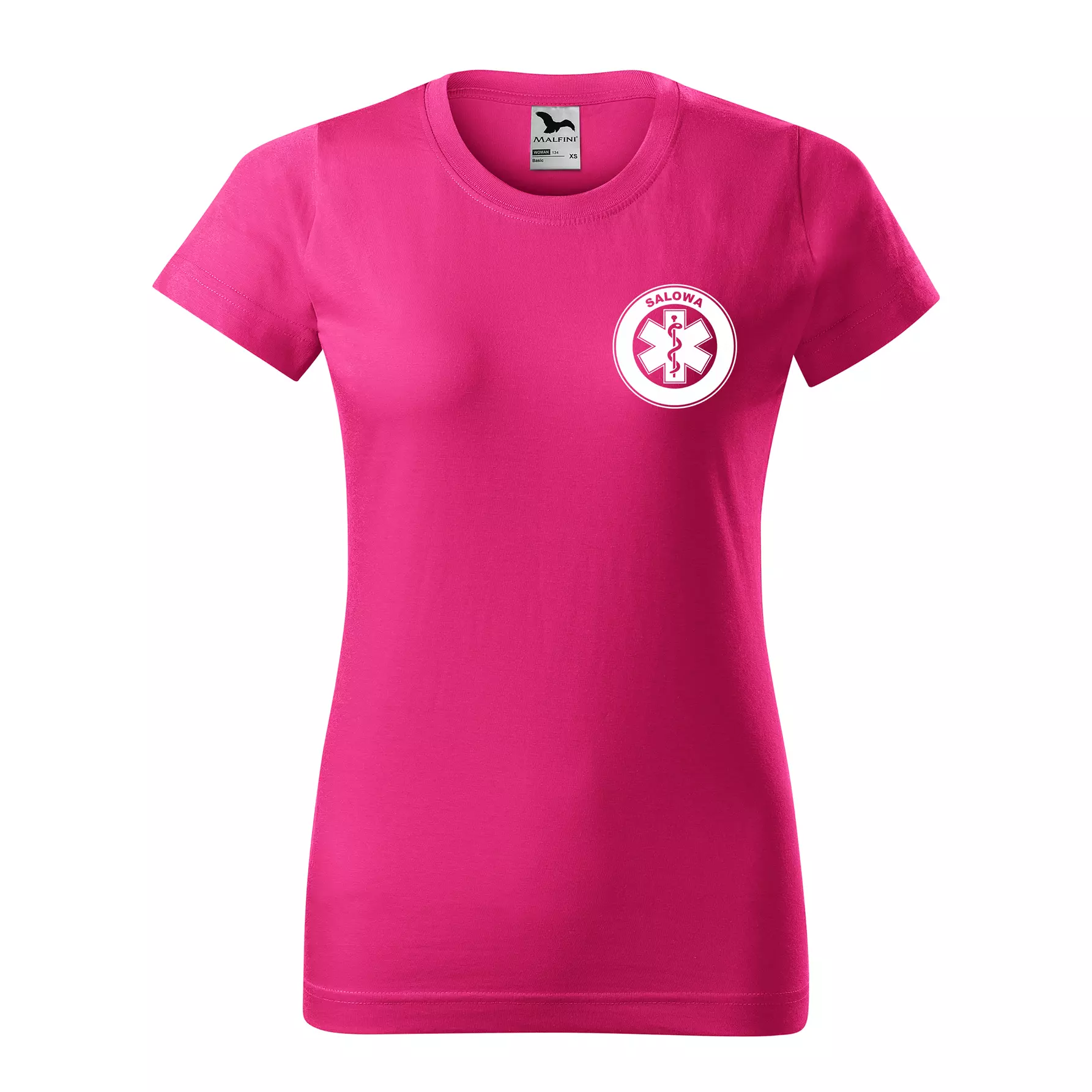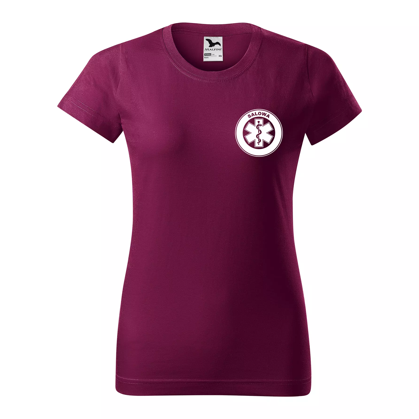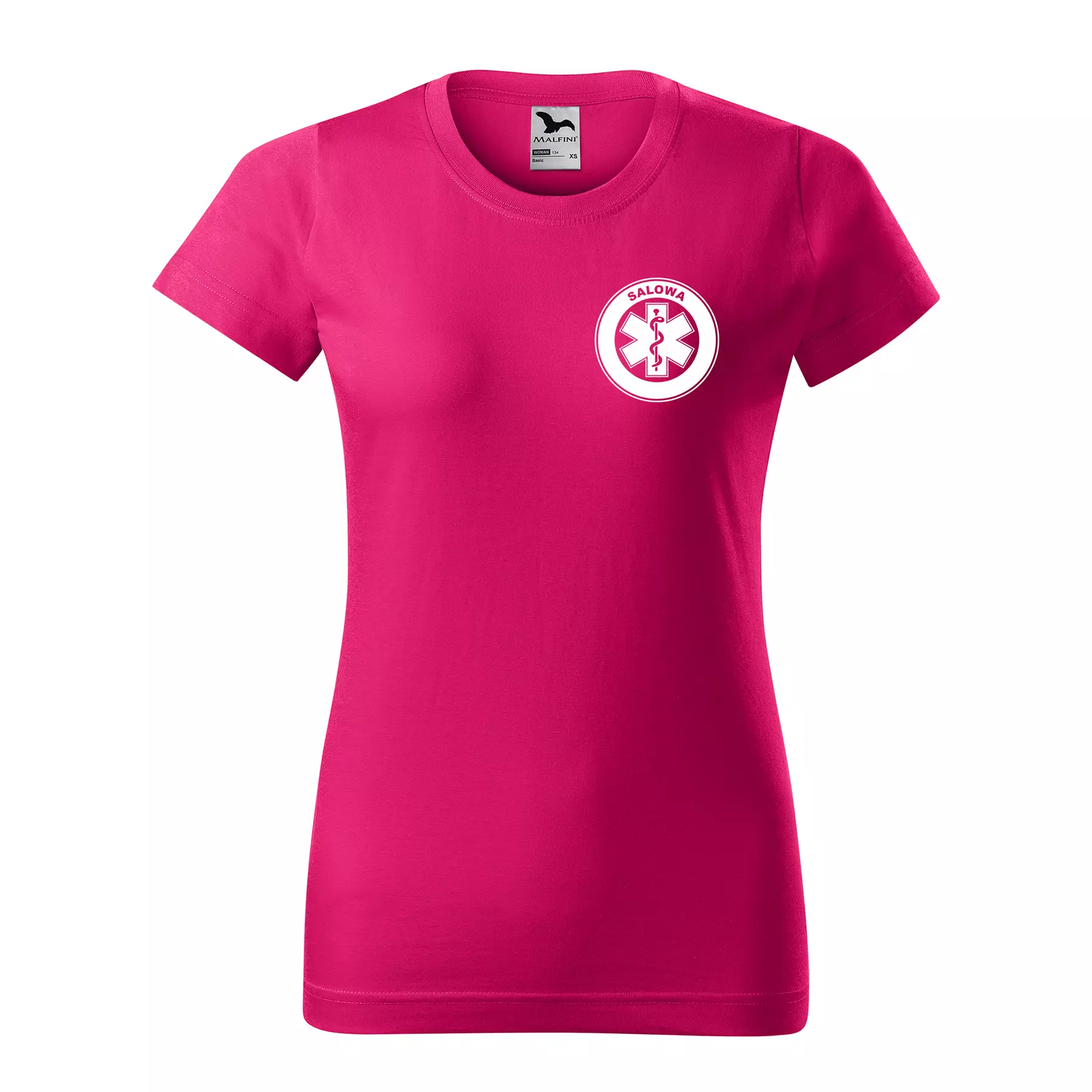 Koszulka damska BASIC 134 medyczna z krótkim rękawem z logo na sercu i plecach z nadrukiem SALOWA logo 160 g/m² koszulka krótki rękaw WSZYSTKIE KOLORY