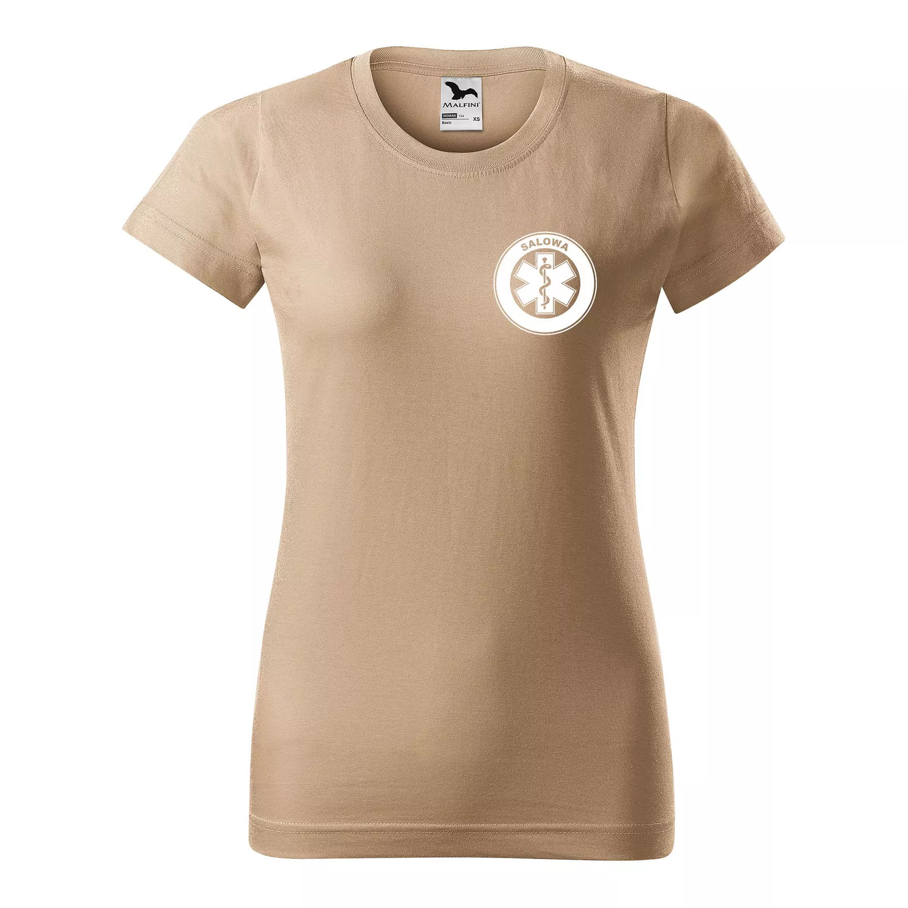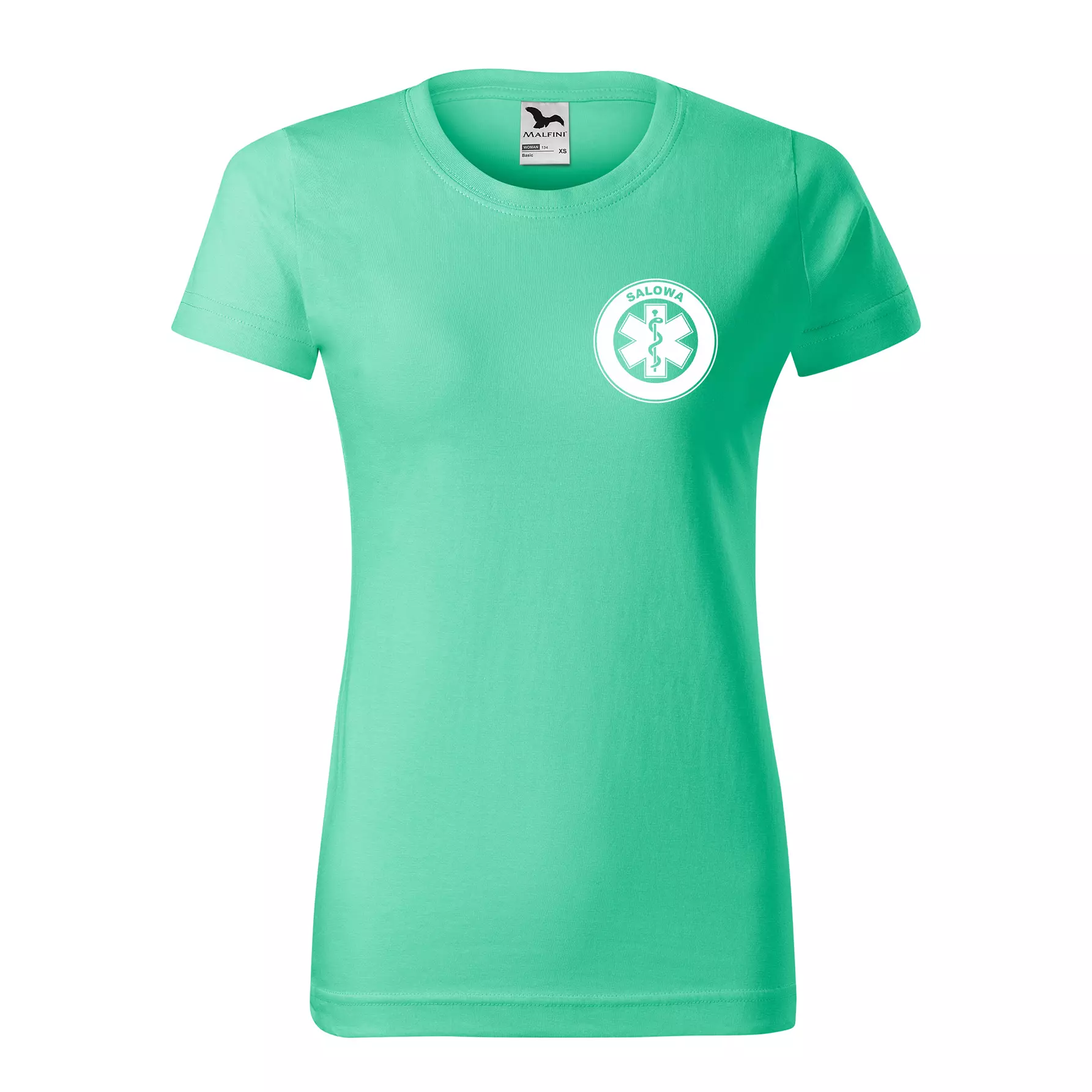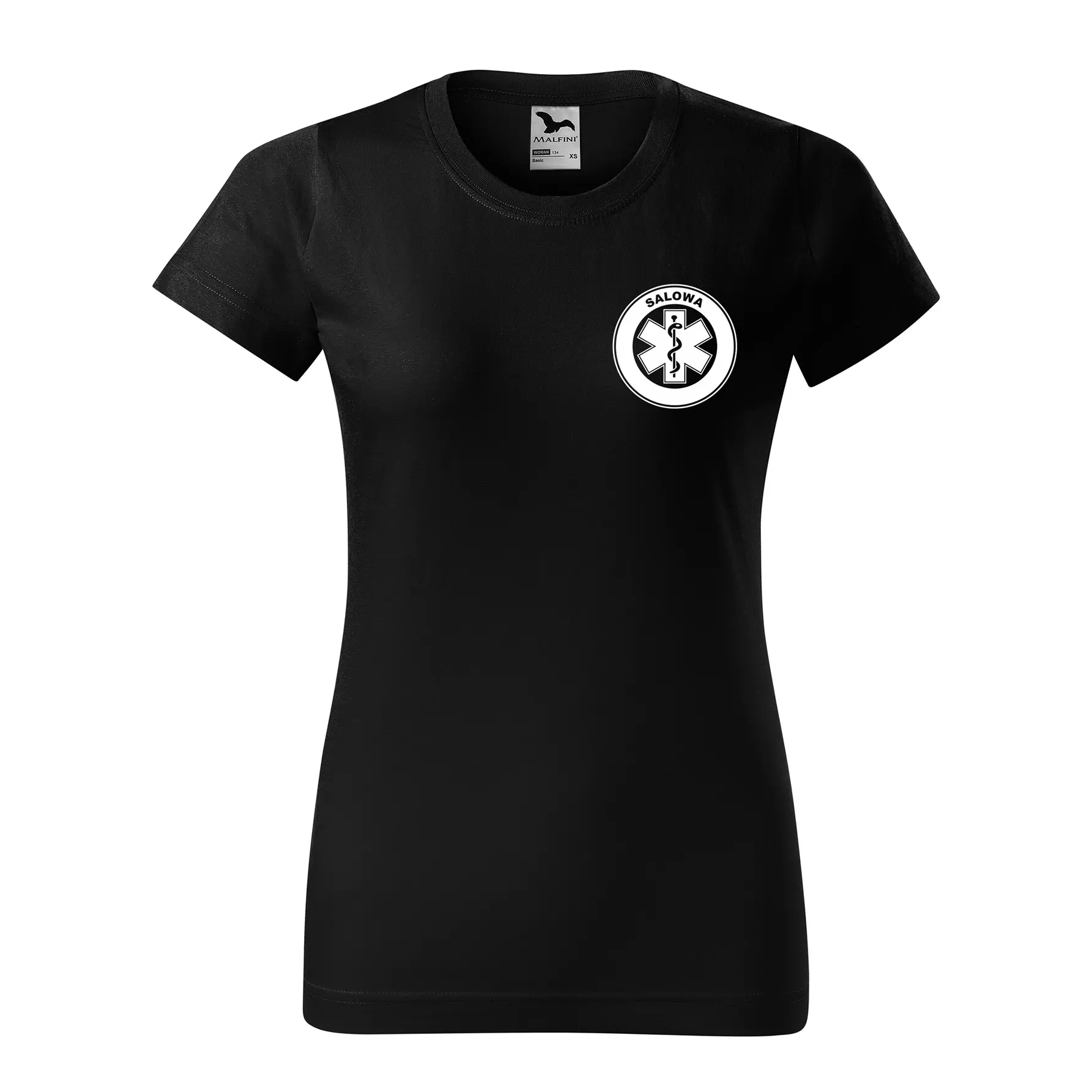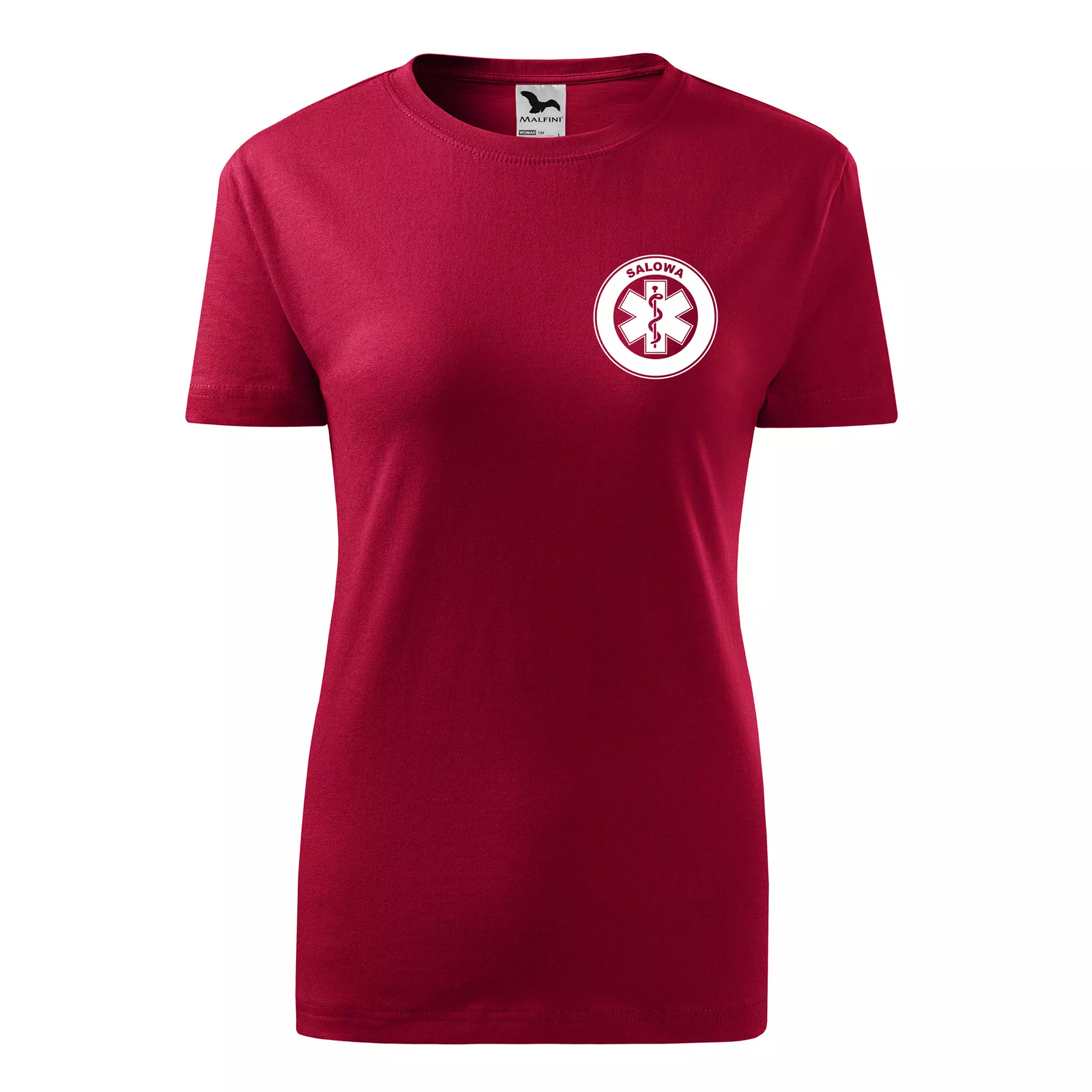 Koszulka damska BASIC 134 medyczna z krótkim rękawem z logo na sercu i plecach z nadrukiem SALOWA logo 160 g/m² koszulka krótki rękaw WSZYSTKIE KOLORY