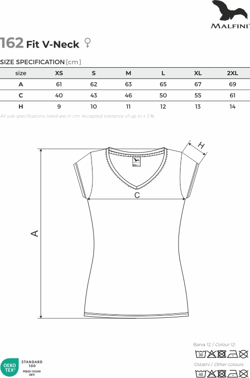 Damska koszulka Fit V-neck 162 o gramaturze 180 g/m² to elegancki model wykonany w 100% z bawełny z wykończeniem silikonowym, które zapewnia wyjątkową miękkość materiału. Charakteryzuje się dopasowanym krojem ze szwami bocznymi, dekoltem w kształcie litery V oraz bardzo krótkimi rękawami. Wąska lamówka z dodatkiem elastanu oraz wzmocnione szwy na ramionach gwarantują trwałość i zachowanie formy, czyniąc koszulkę doskonałą bazą pod subtelny haft, sitodruk lub druk cyfrowy.