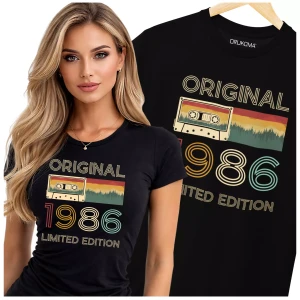 Koszulka damska na 40 urodziny na czterdziestkę z napisem: "ORIGINAL 1986 LIMITED EDITION"