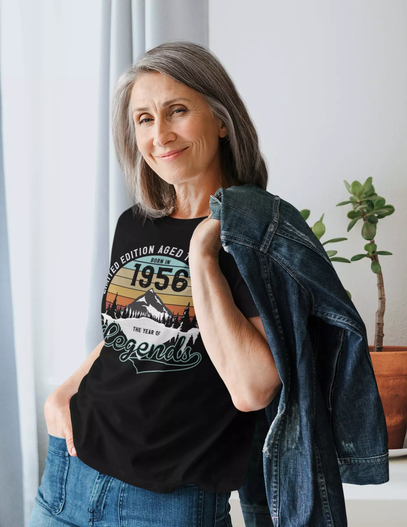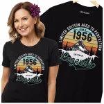 Koszulka damska na 70 urodziny na siedemdziesiątkę z napisem: "LIMITED EDITION AGED TO PERFECTION BORN IN 1956 THE YEAR OF LEGENDS".