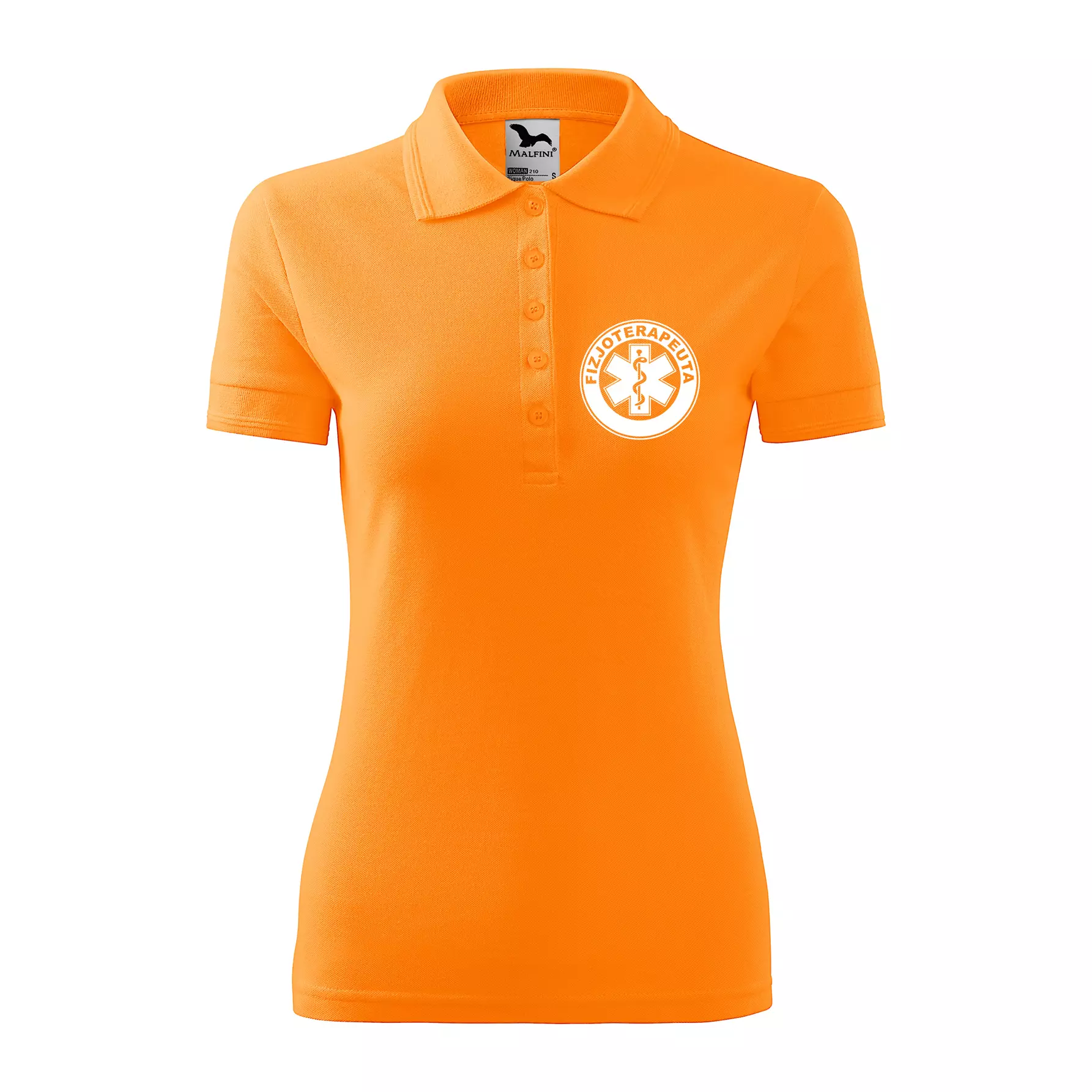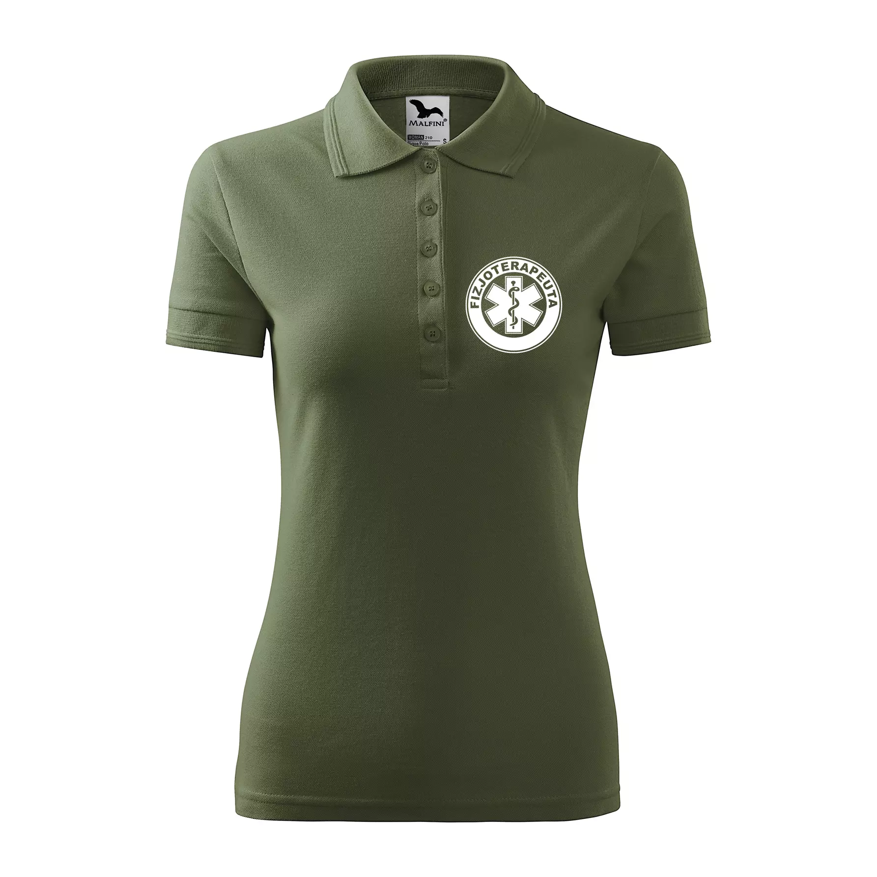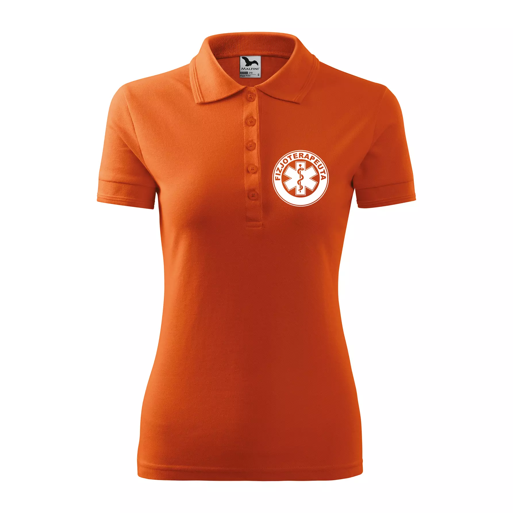 Koszulka damska polo z logo na sercu i plecach z nadrukiem FIZJOTERAPEUTA logo firmy 200 g/m² Pique Polo 210 koszulka polo WSZYSTKIE KOLORY