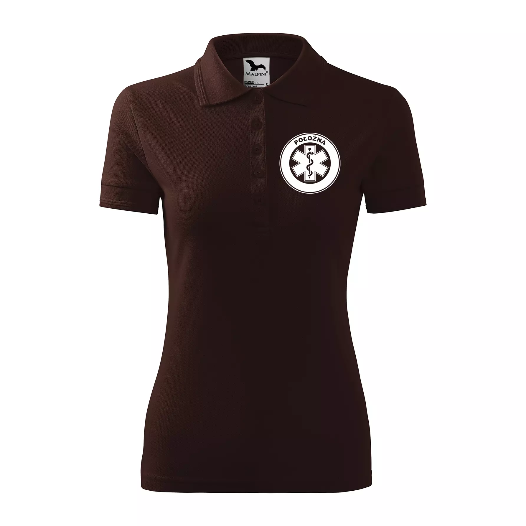 Koszulka damska polo z logo na sercu i plecach z nadrukiem POŁOŻNA logo firmy 200 g/m² Pique Polo 210 koszulka polo WSZYSTKIE KOLORY