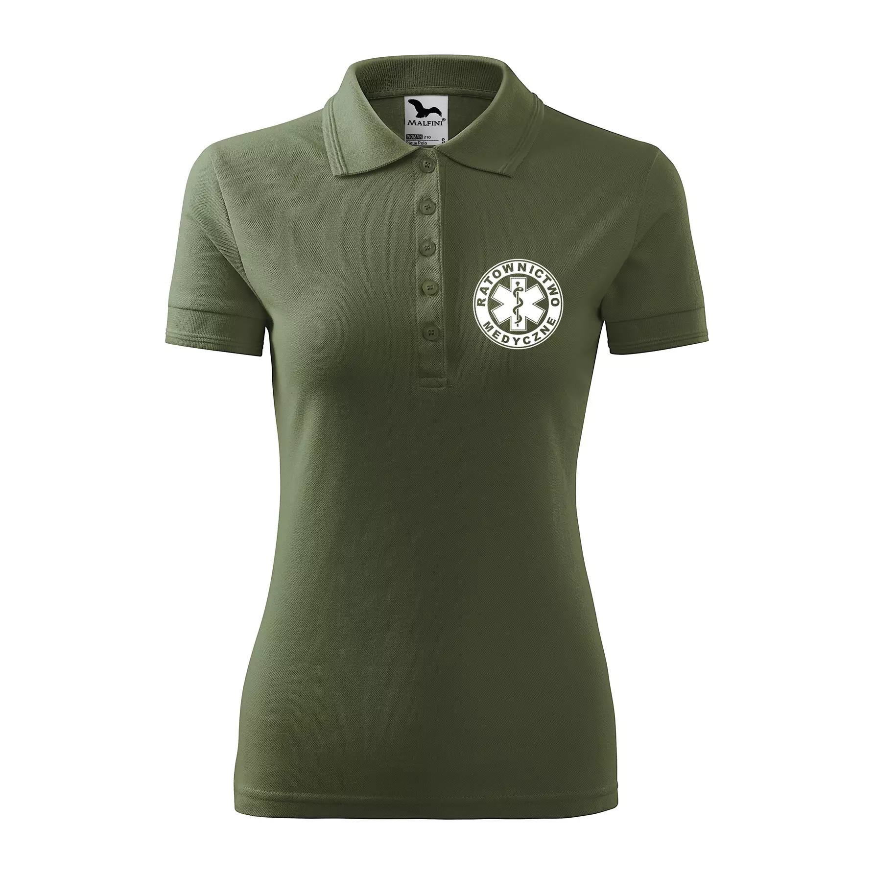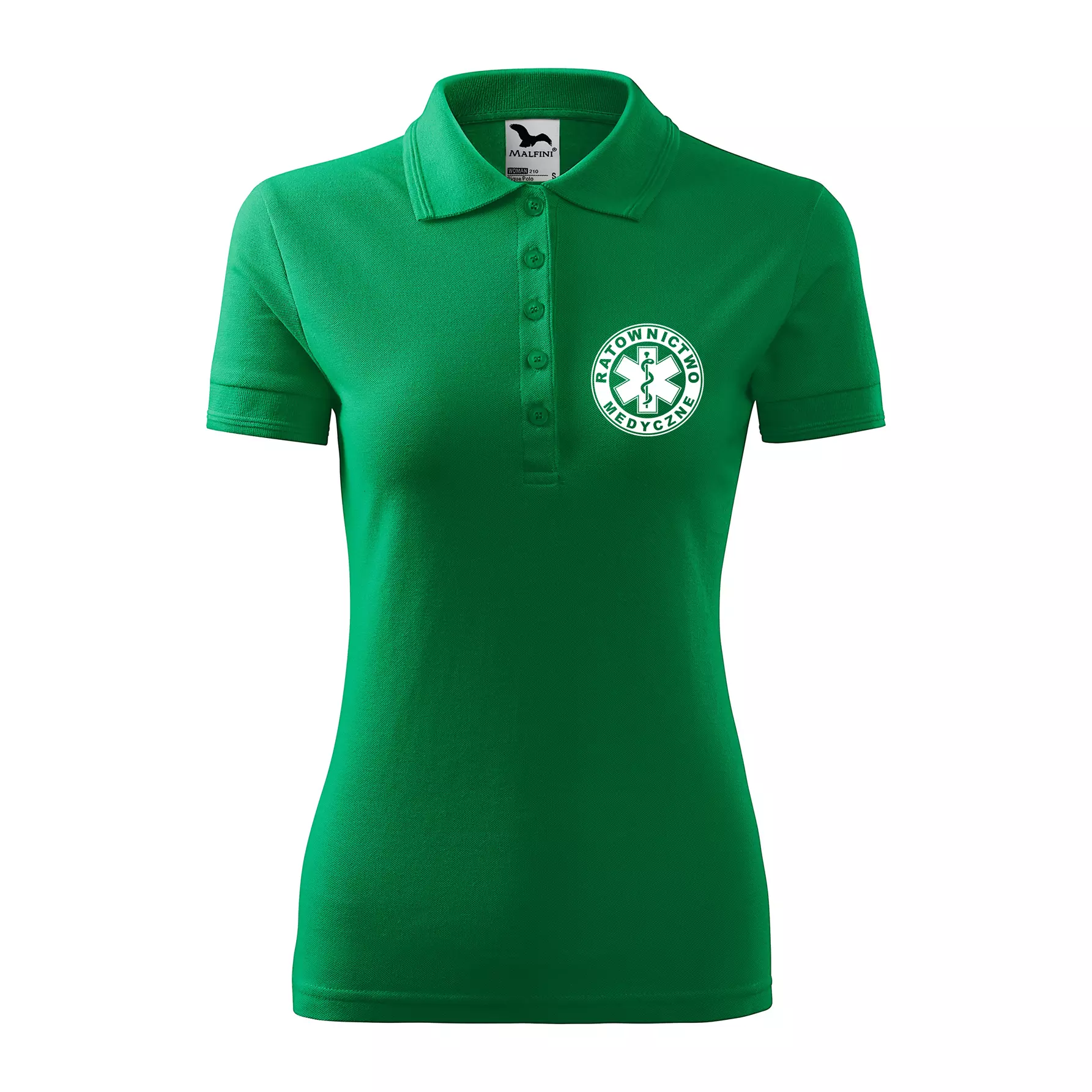 Koszulka damska polo z logo na sercu i plecach z nadrukiem RATOWNICTWO MEDYCZNE logo firmy 200 g/m² Pique Polo 210 koszulka polo WSZYSTKIE KOLORY