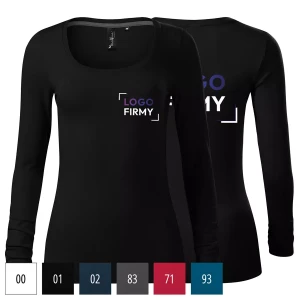 Koszulka damska z długim rękawem 160g Brave 156 z logo własnym nadrukiem na sercu i plecach odzież reklamowa WSZYSTKIE KOLORY