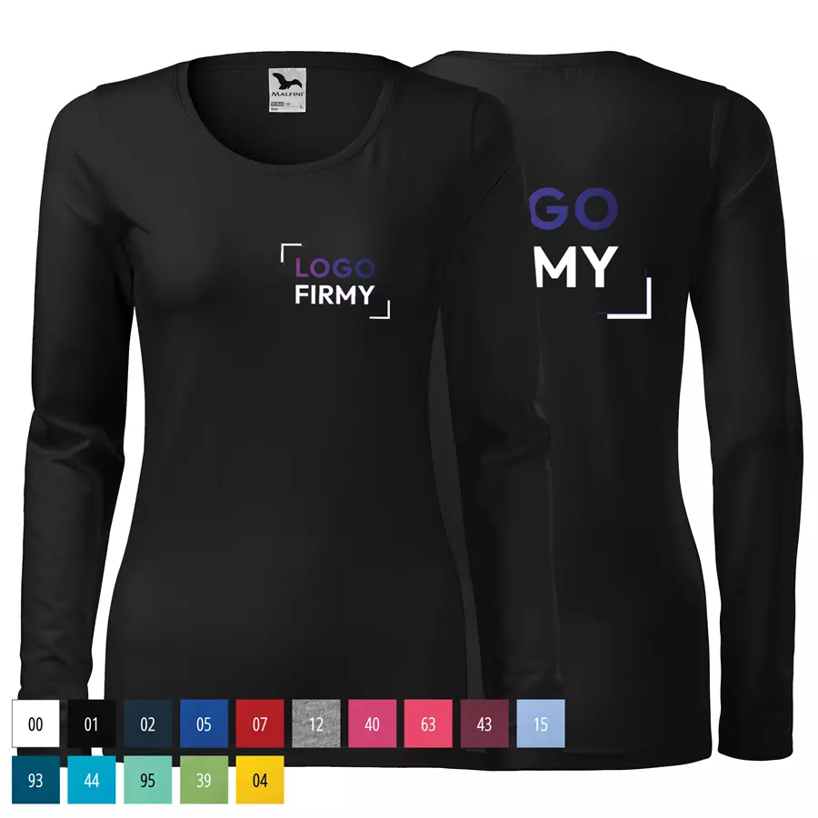 Koszulka damska z długim rękawem 180g Slim 139 z logo własnym nadrukiem na sercu i plecach odzież reklamowa WSZYSTKIE KOLORY