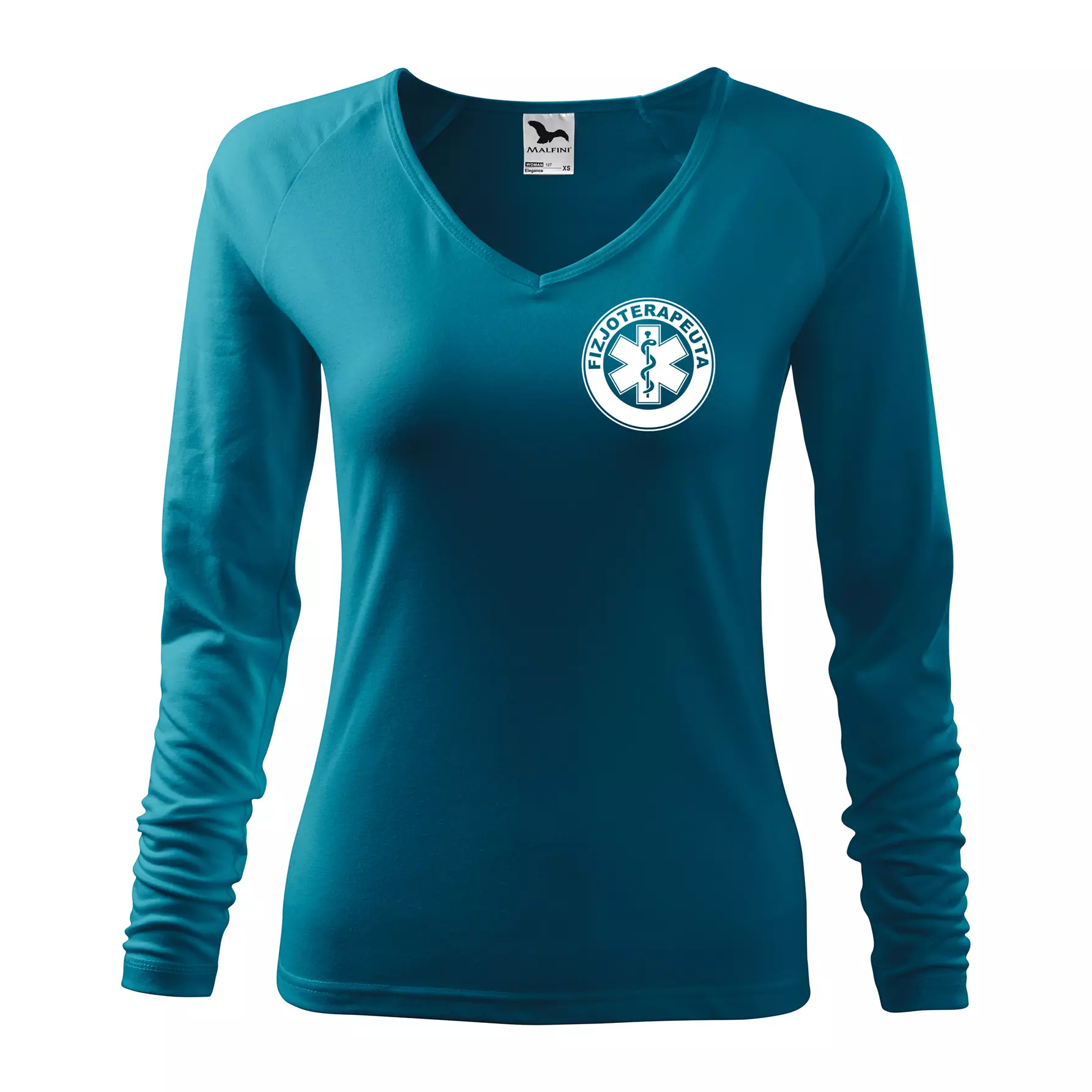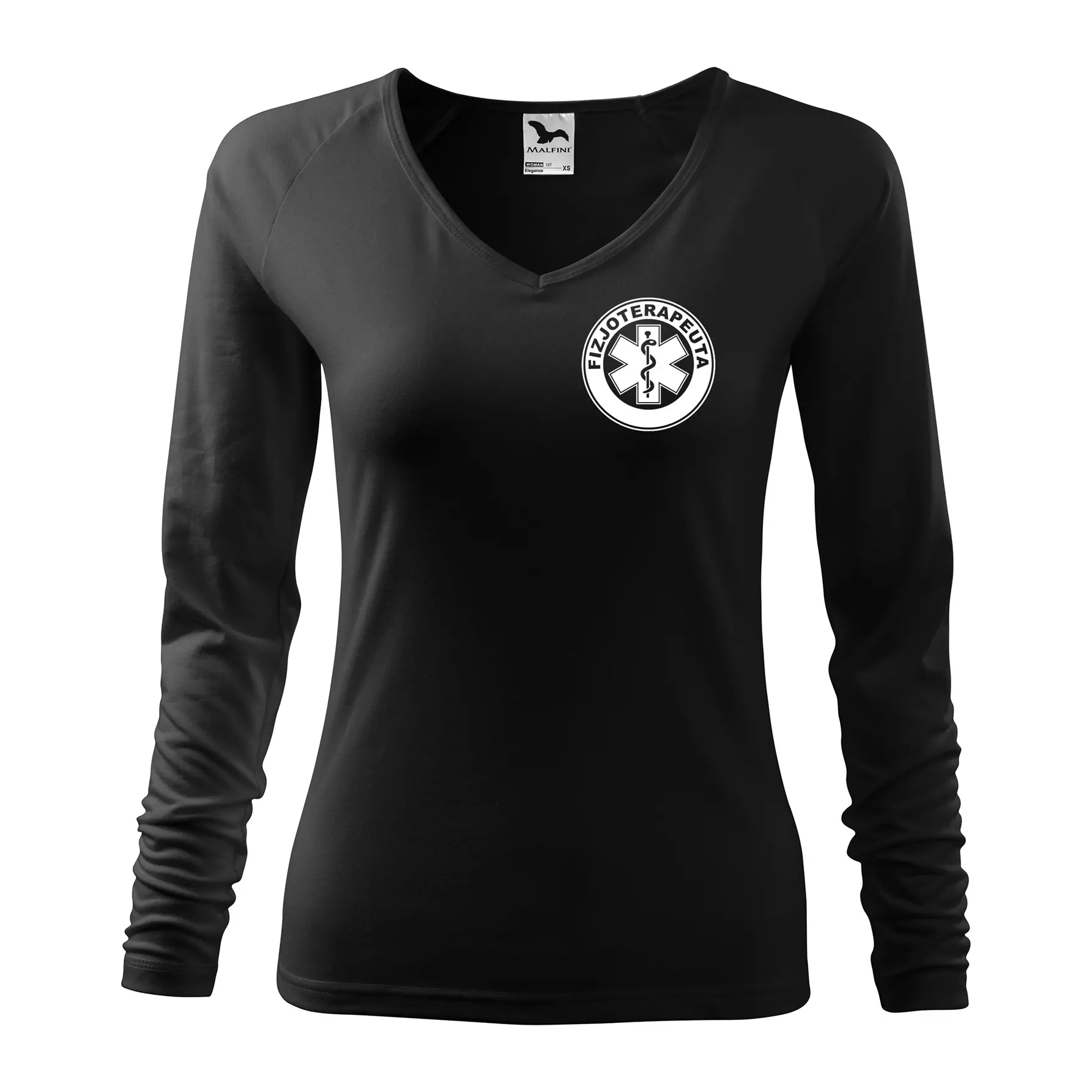 Koszulka damska z długim rękawem Elegance 127 z nadrukiem FIZJOTERAPEUTA na sercu i plecach odzież reklamowa 180 g/m² WSZYSTKIE KOLORY