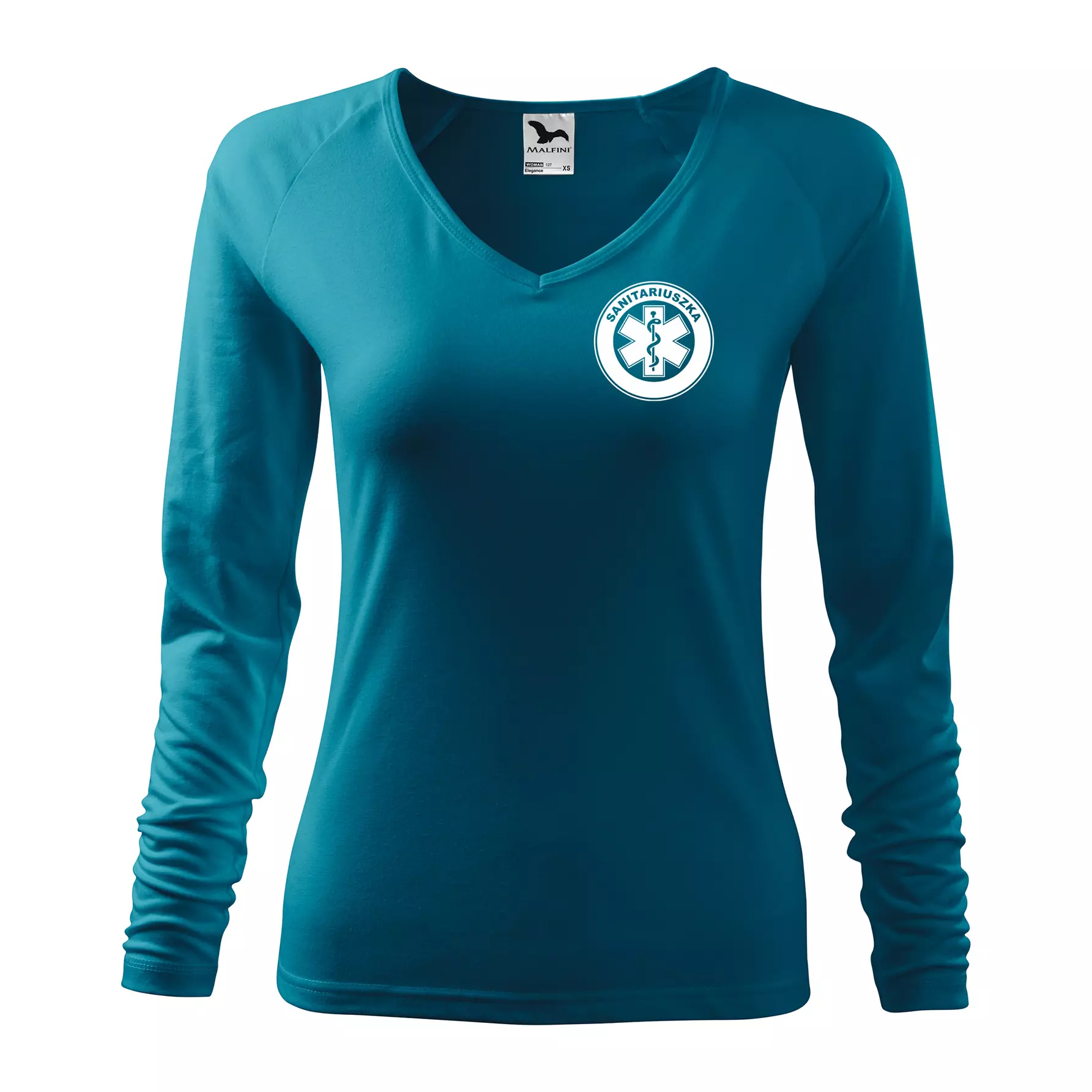 Koszulka damska z długim rękawem Elegance 127 z nadrukiem SANITARIUSZKA na sercu i plecach odzież reklamowa 180 g/m² WSZYSTKIE KOLORY