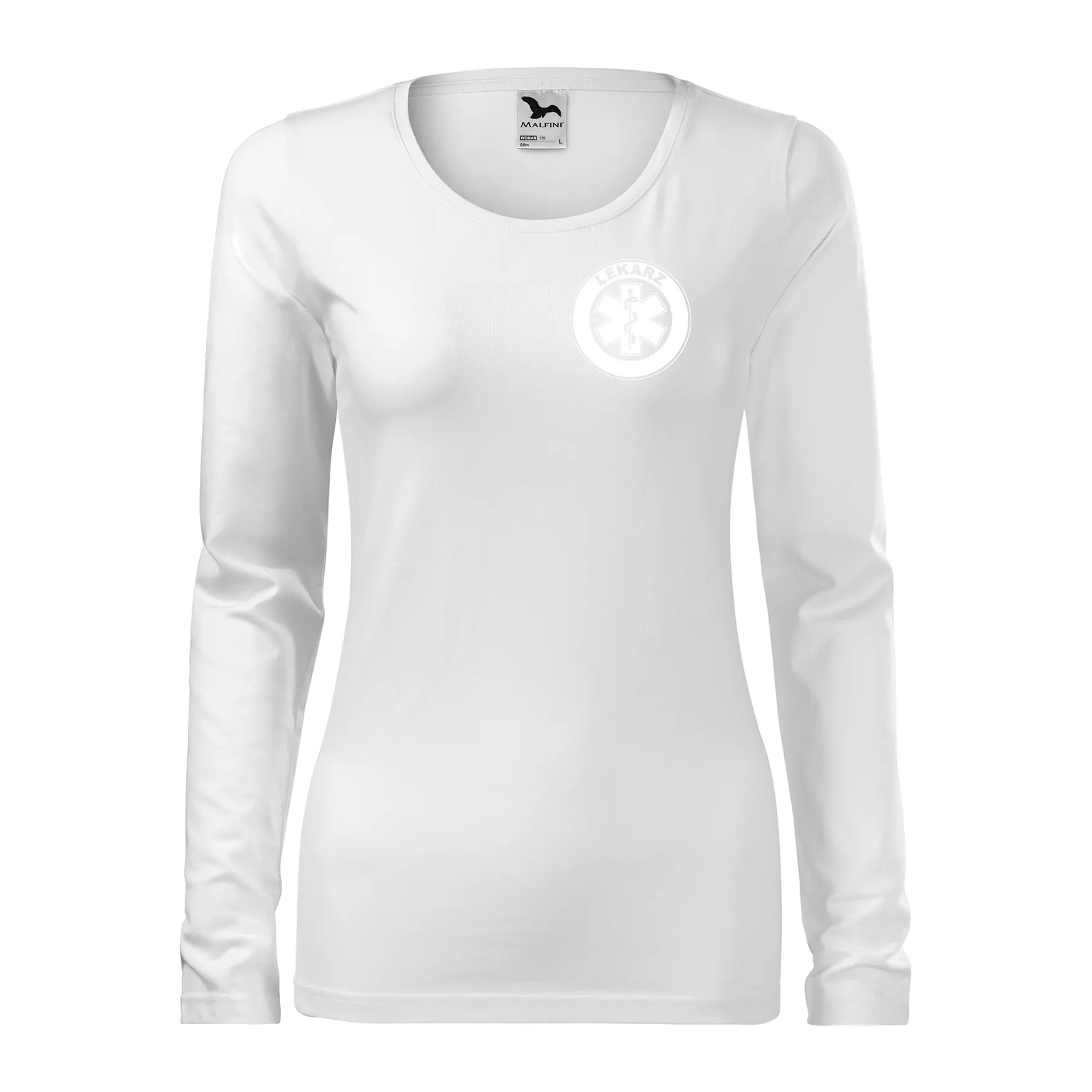 Koszulka damska z długim rękawem Slim 139 z logo własnym nadrukiem LEKARZ na sercu i plecach odzież reklamowa 180 g/m² WSZYSTKIE KOLORY