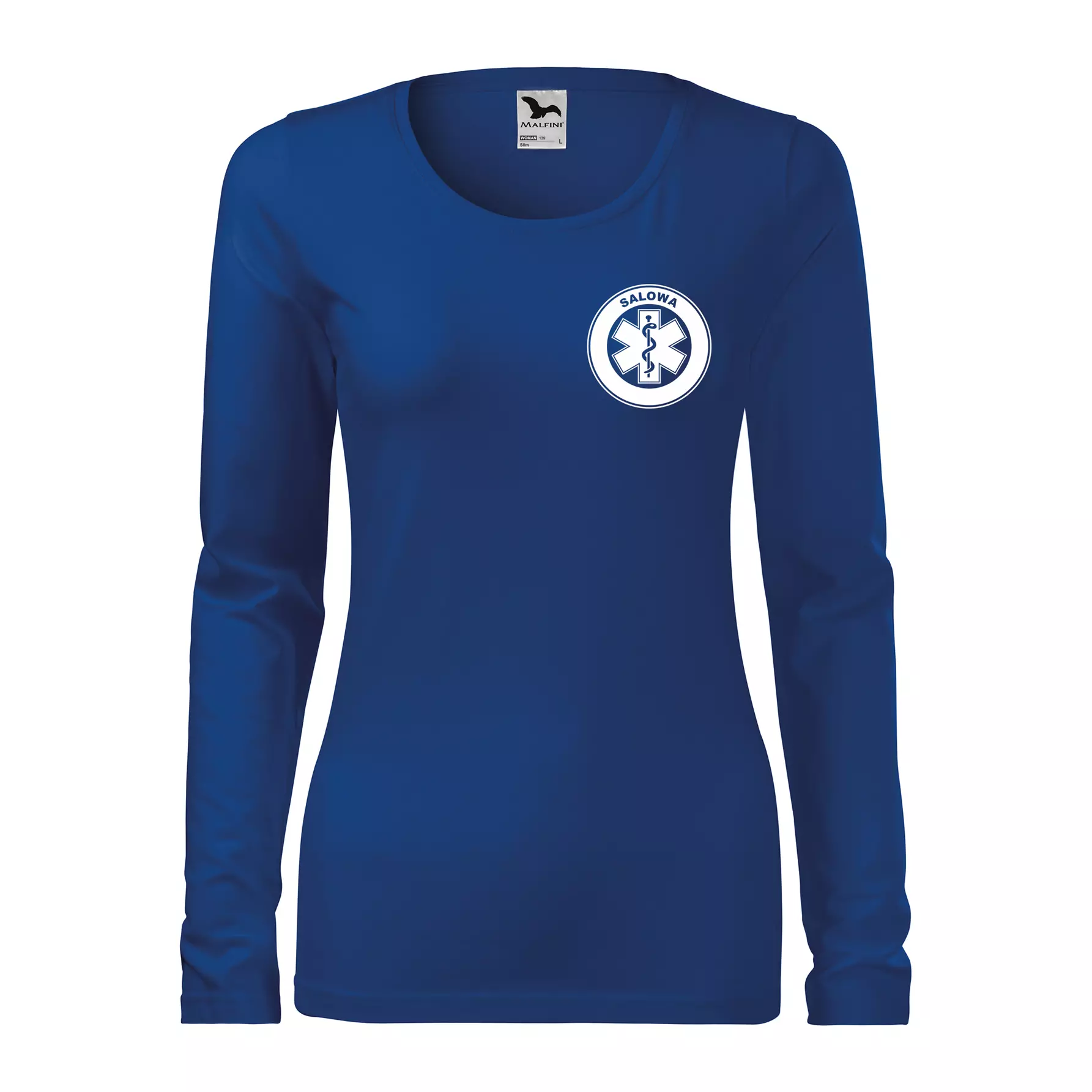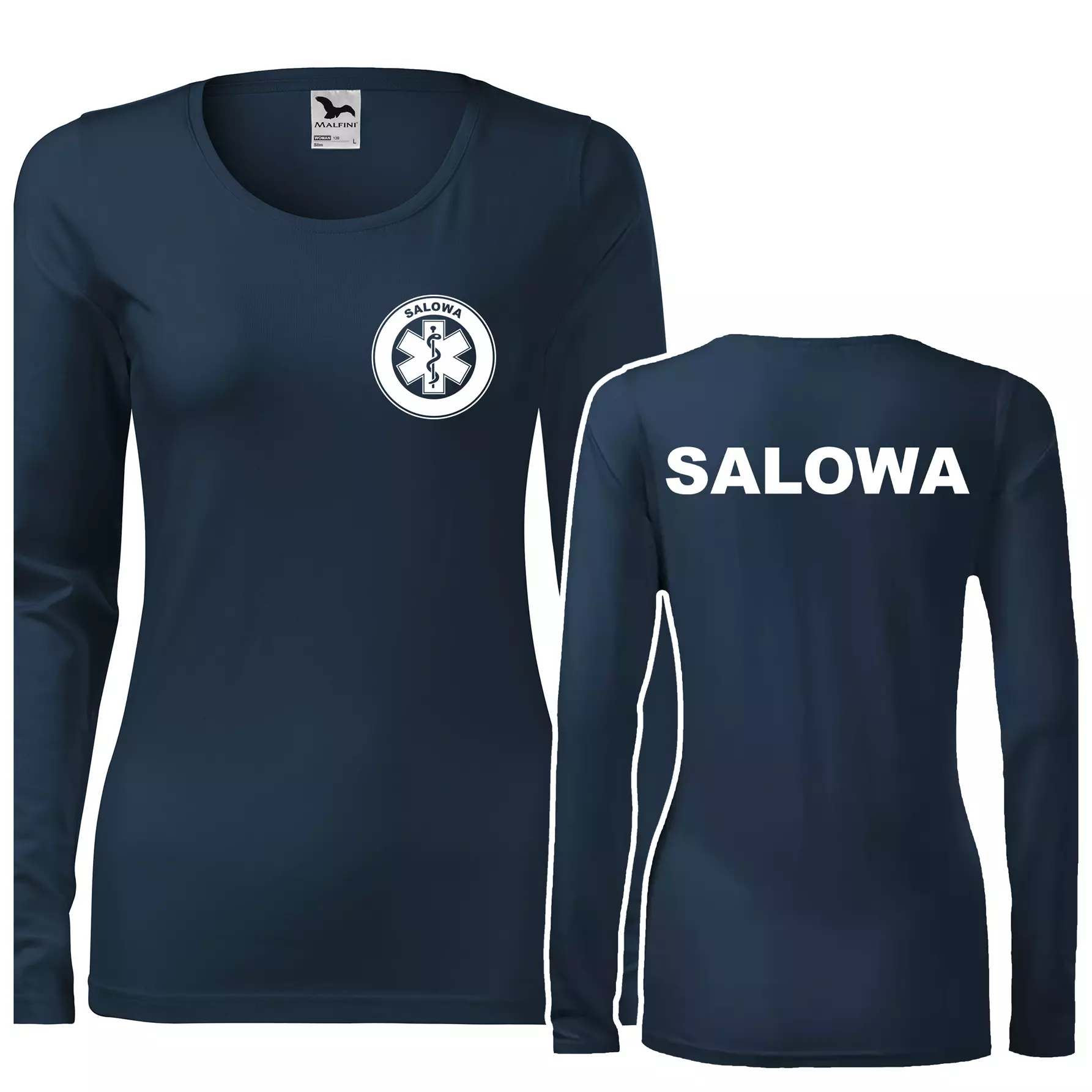 Koszulka damska z długim rękawem Slim 139 z logo własnym nadrukiem SALOWA na sercu i plecach odzież reklamowa 180 g/m² WSZYSTKIE KOLORY