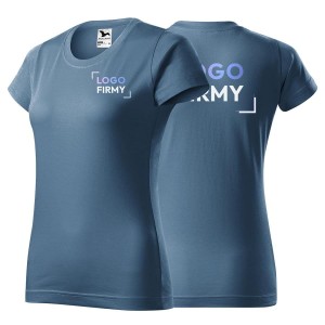 Koszulka denim z krótkim rękawem z logo na sercu i plecach damska z nadrukiem logo firmy 160g BASIC134 kolor 60 koszulka krótki rękaw