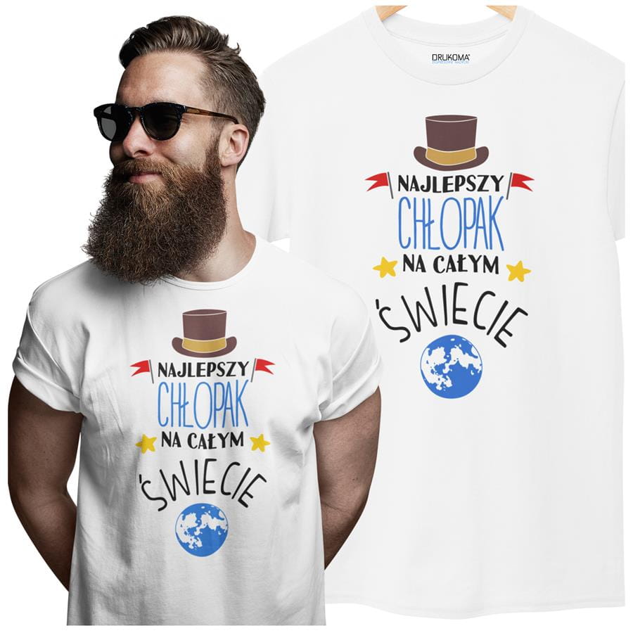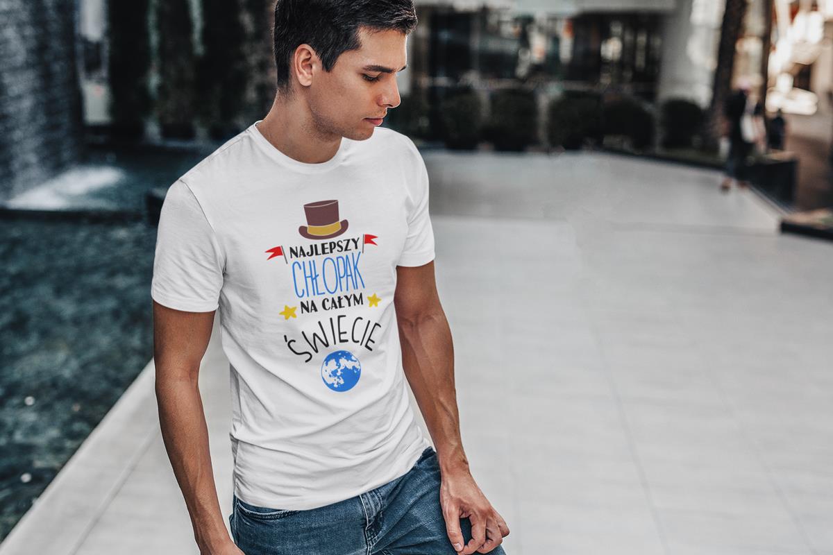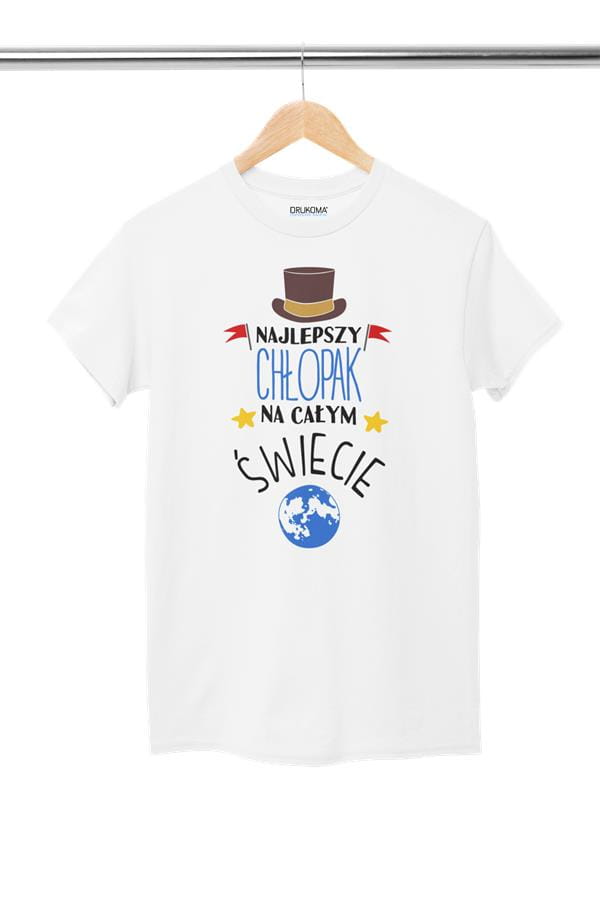 Koszulka dla Chłopaka modny prezent na Walentynki lub Urodziny stylowa koszulka z napisem "Najlepszy Chłopak na całym świecie" w kolorze białym