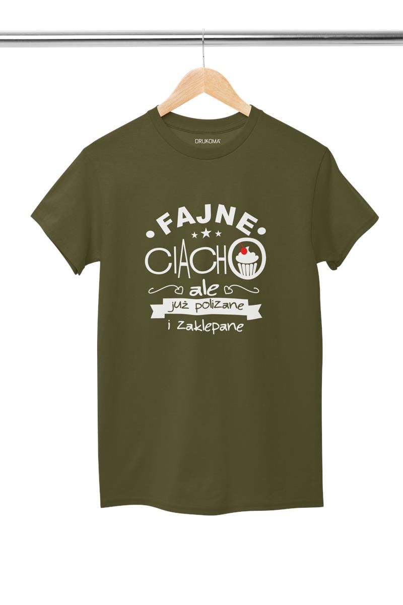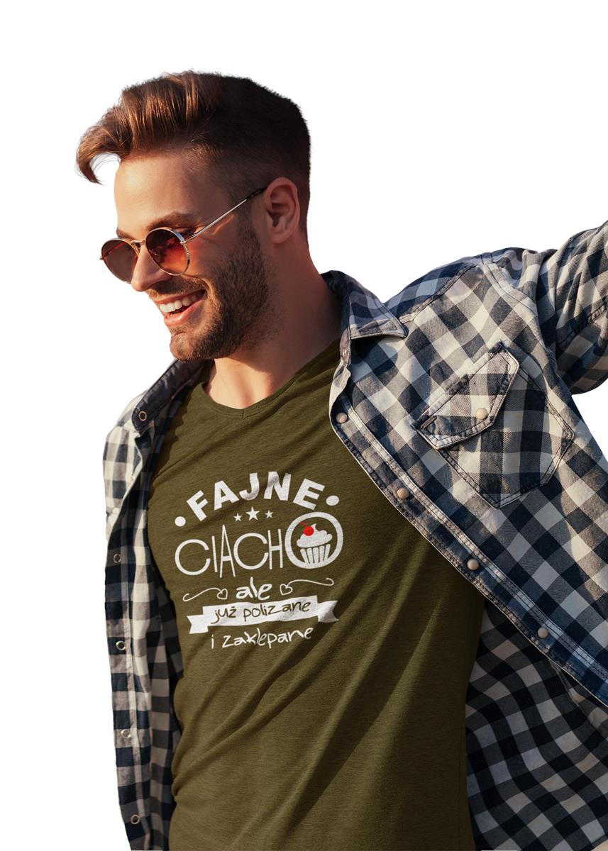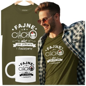 Koszulka dla Chłopaka w zestawie z kubkiem z nadrukiem FAJNE CIACHO, ALE JUŻ POLIZANE I ZAKLEPANE KOLOR KHAKI