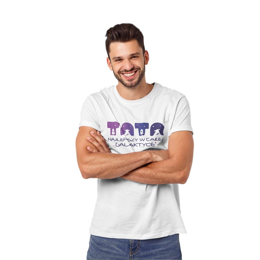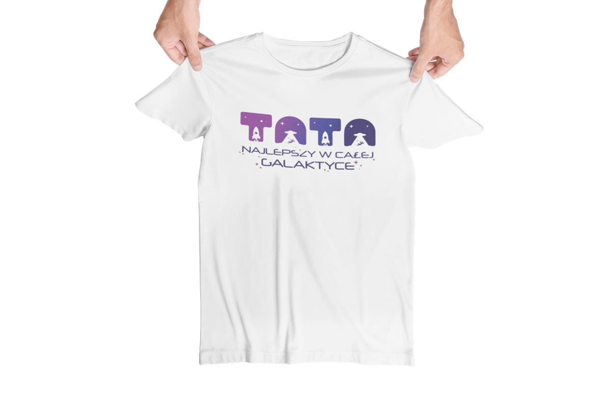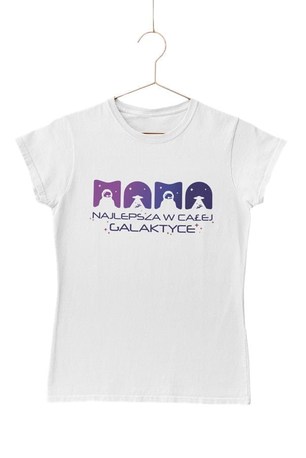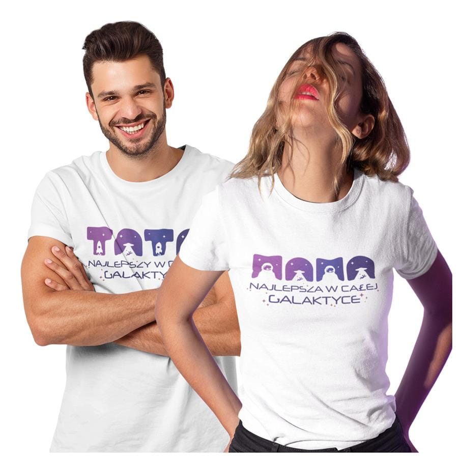 Koszulka dla Mamy i Taty na Dzień Matki i Ojca z napisem Mama najlepsza w całej galaktyce i Tata najlepszy w całej galaktyce w kolorze białym