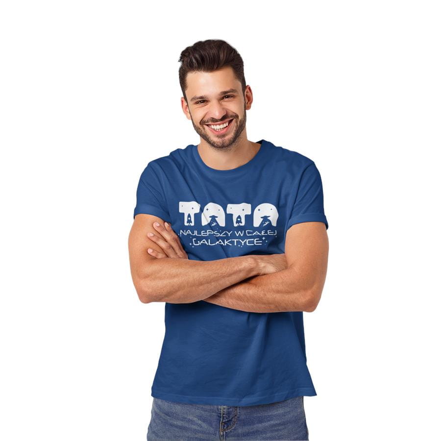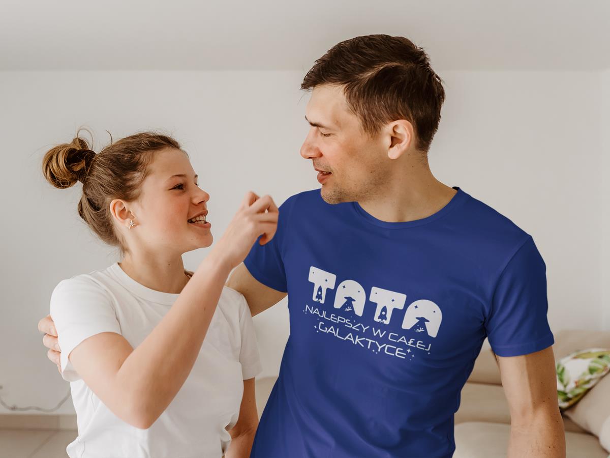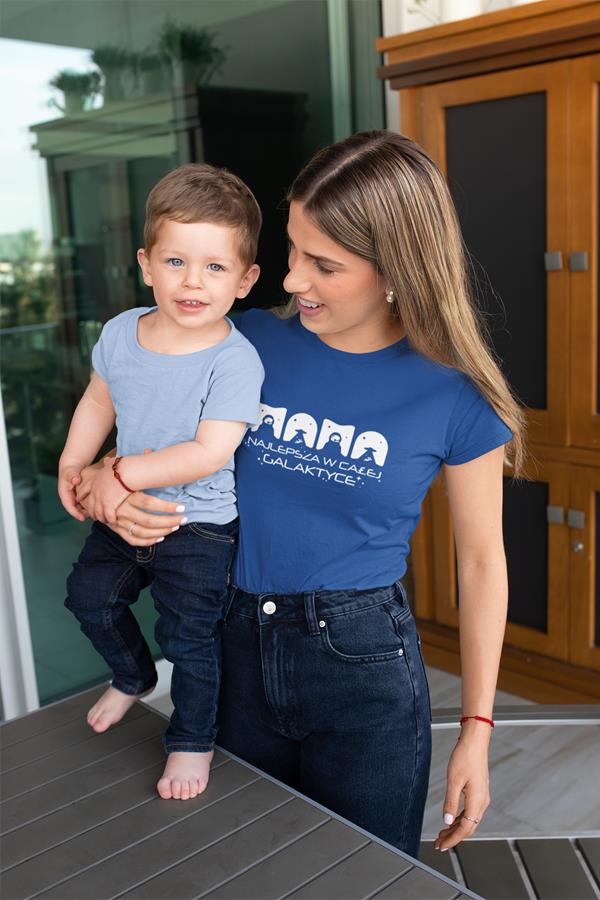 Koszulka dla Mamy i Taty na Dzień Matki i Ojca z napisem Mama najlepsza w całej galaktyce i Tata najlepszy w całej galaktyce w kolorze granatowym